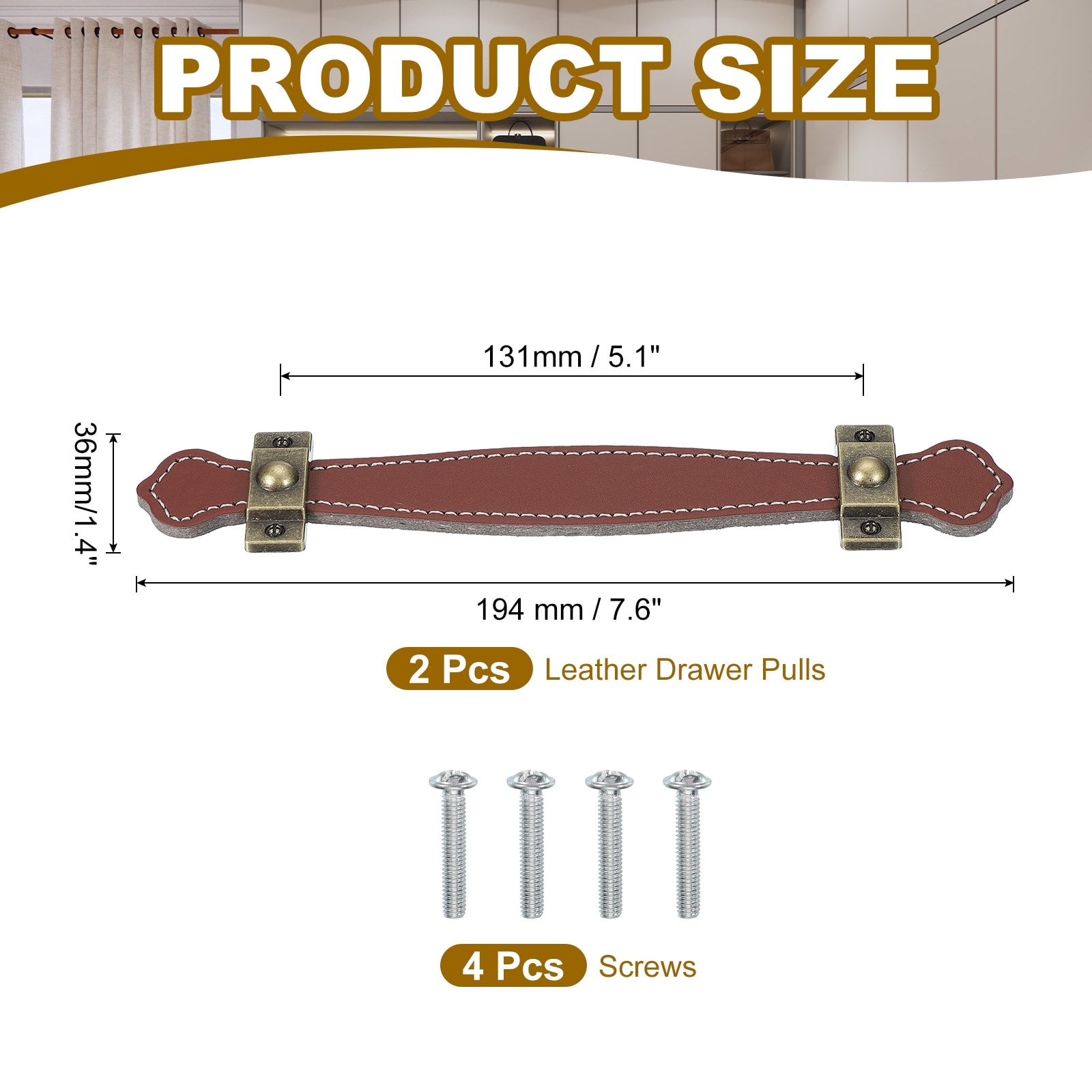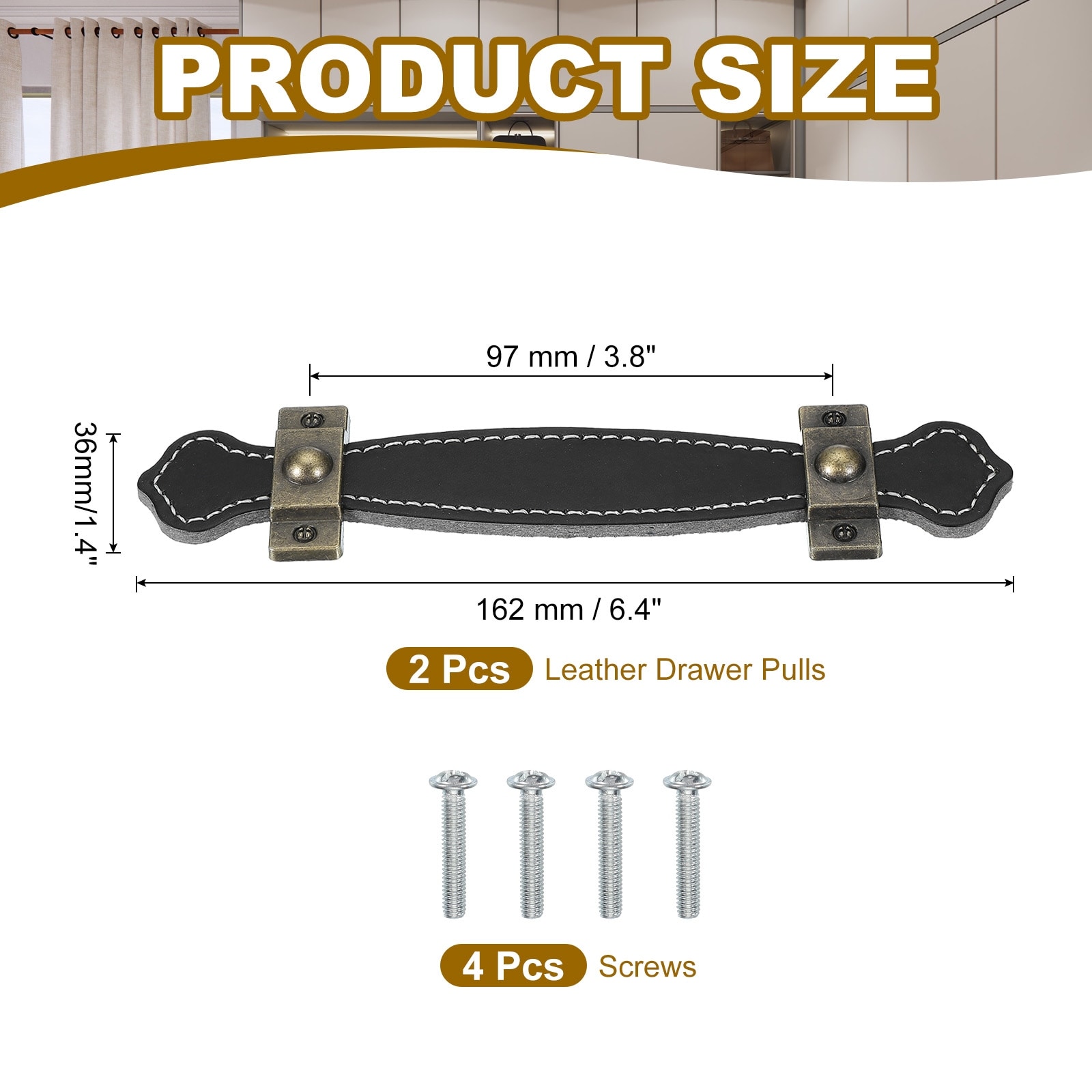 Leather Drawer Pulls with Iron Sheet, Leather Strap Trunk Handle Cabinet Knobs for Dresser Door Luggage