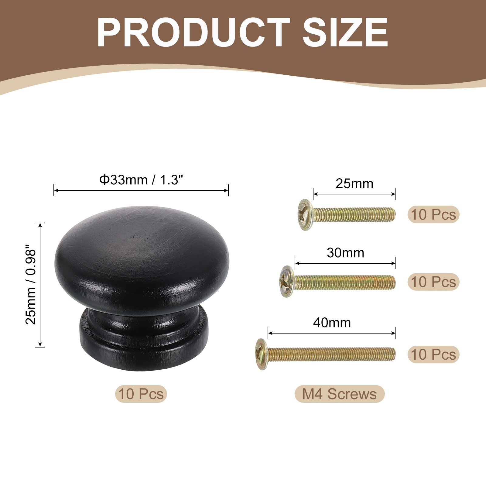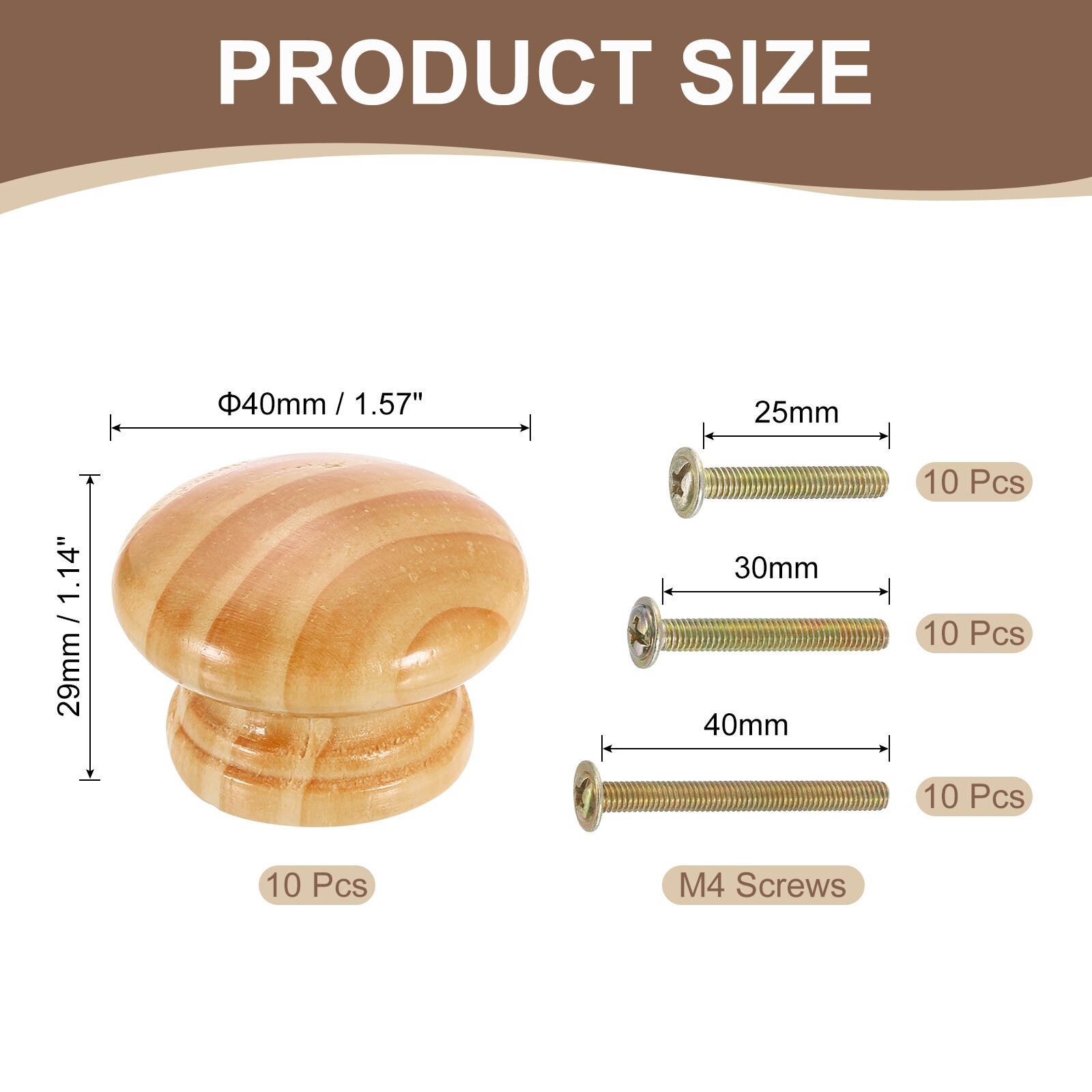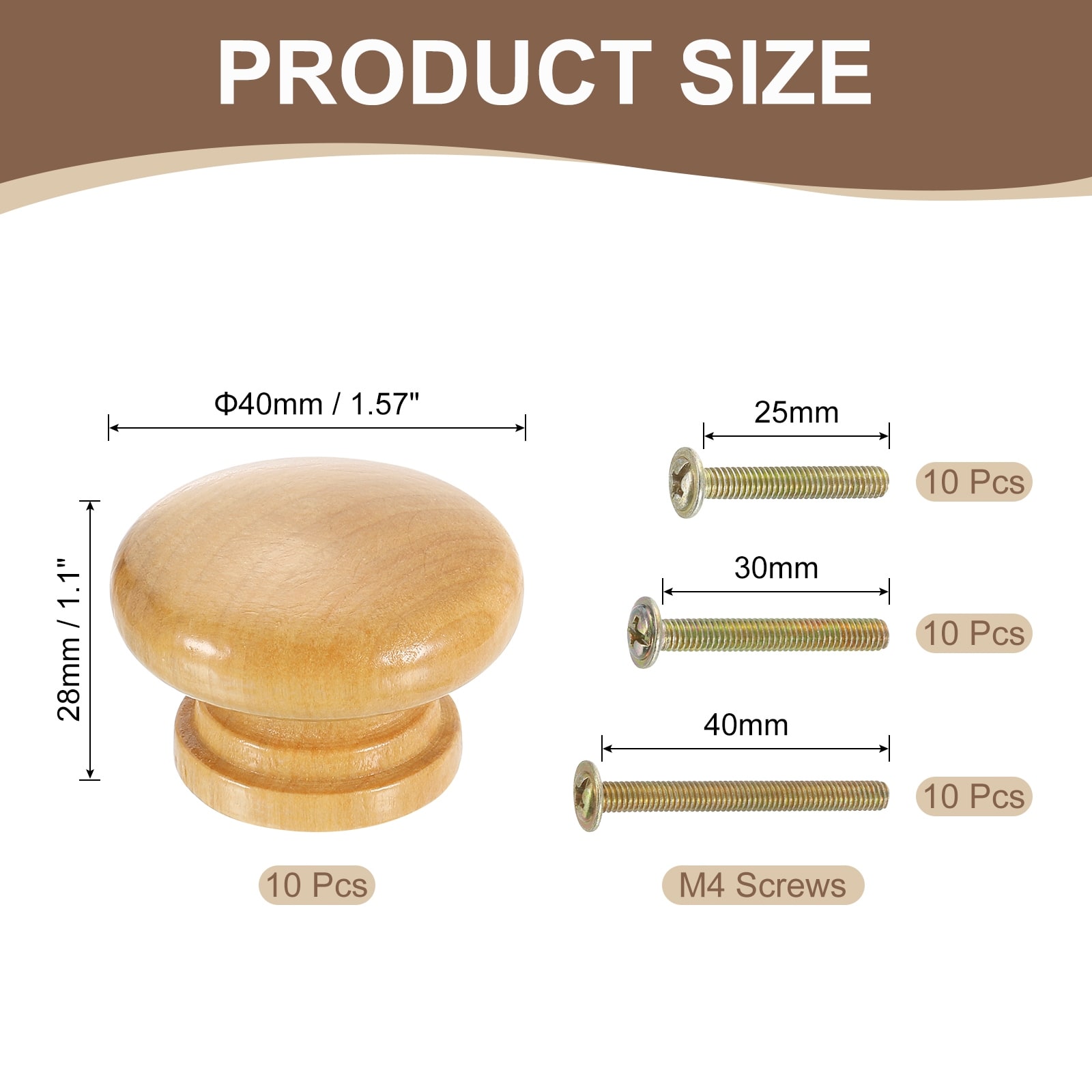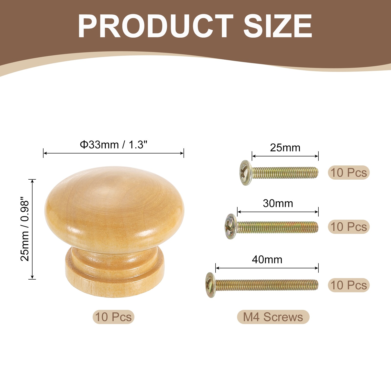 Round Wood Drawer Knob, Round Cabinet Knobs Mushroom Shape Paint Surface Wooden Knobs with Screws for Furniture