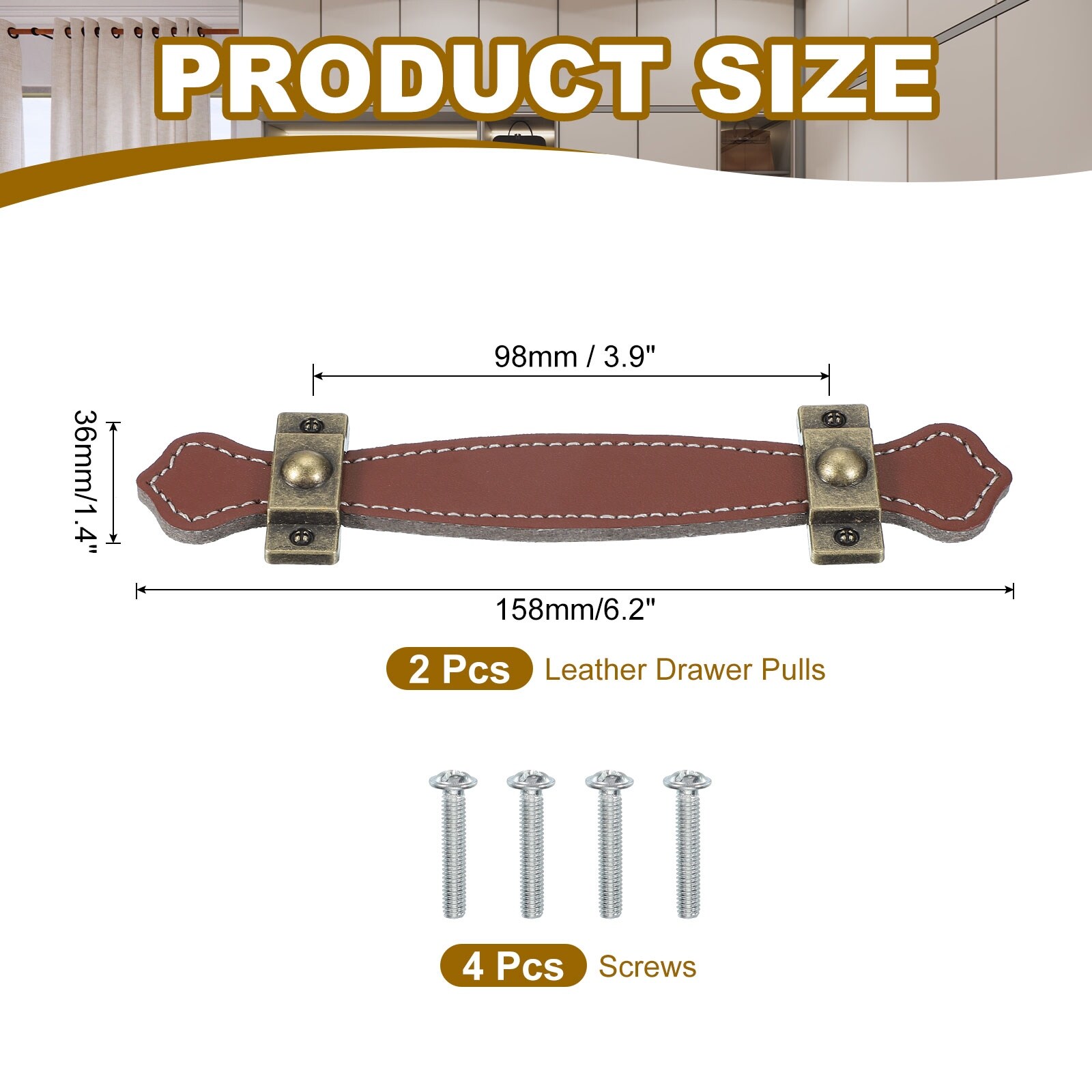 Leather Drawer Pulls with Iron Sheet, Leather Strap Trunk Handle Cabinet Knobs for Dresser Door Luggage