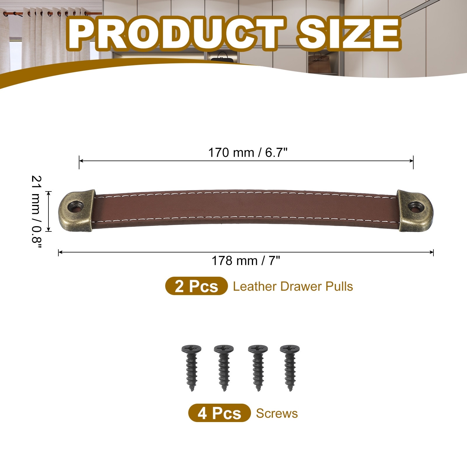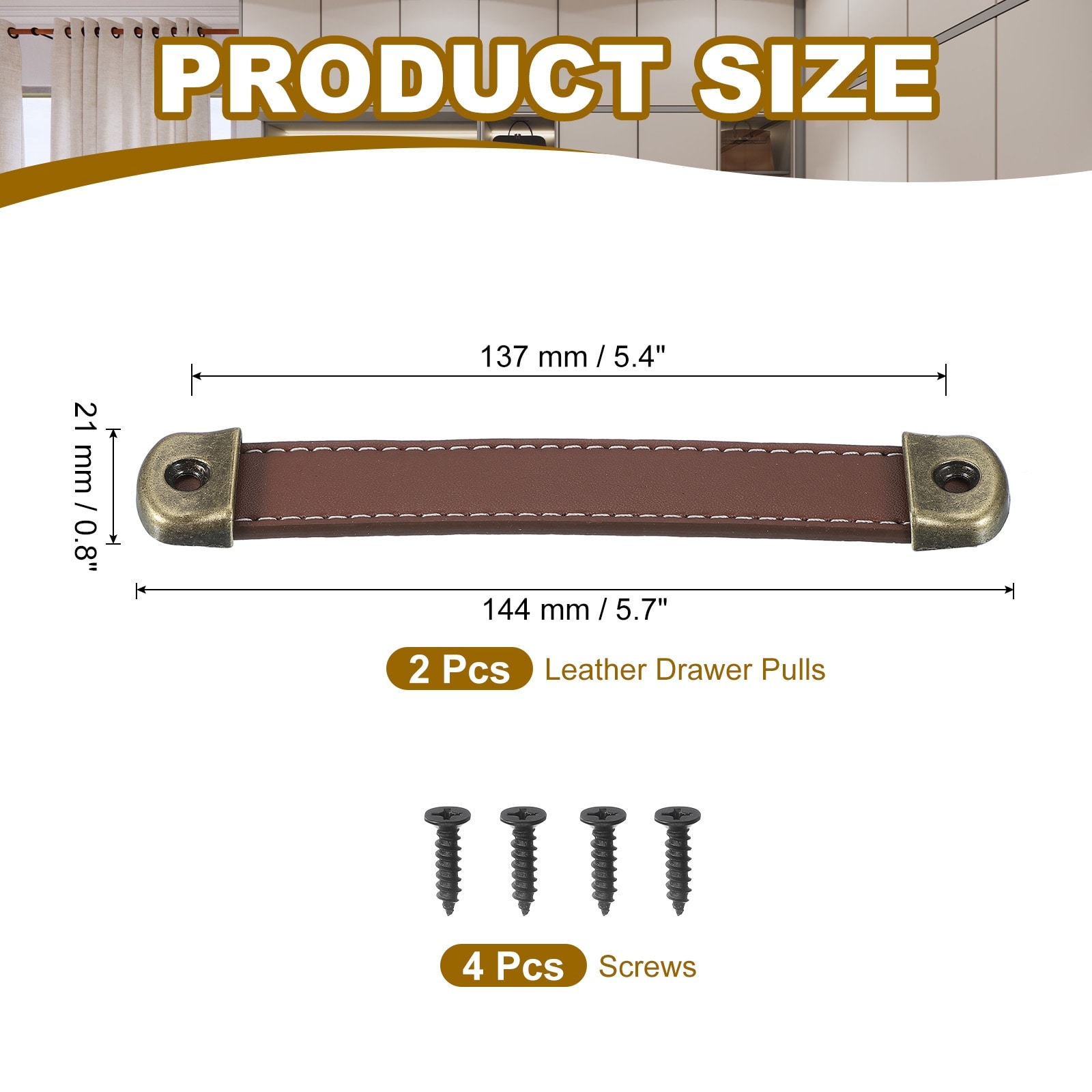 Leather Drawer Pulls with Iron Sheet, Leather Strap Trunk Handle Cabinet Knobs for Door Suitcase Luggage