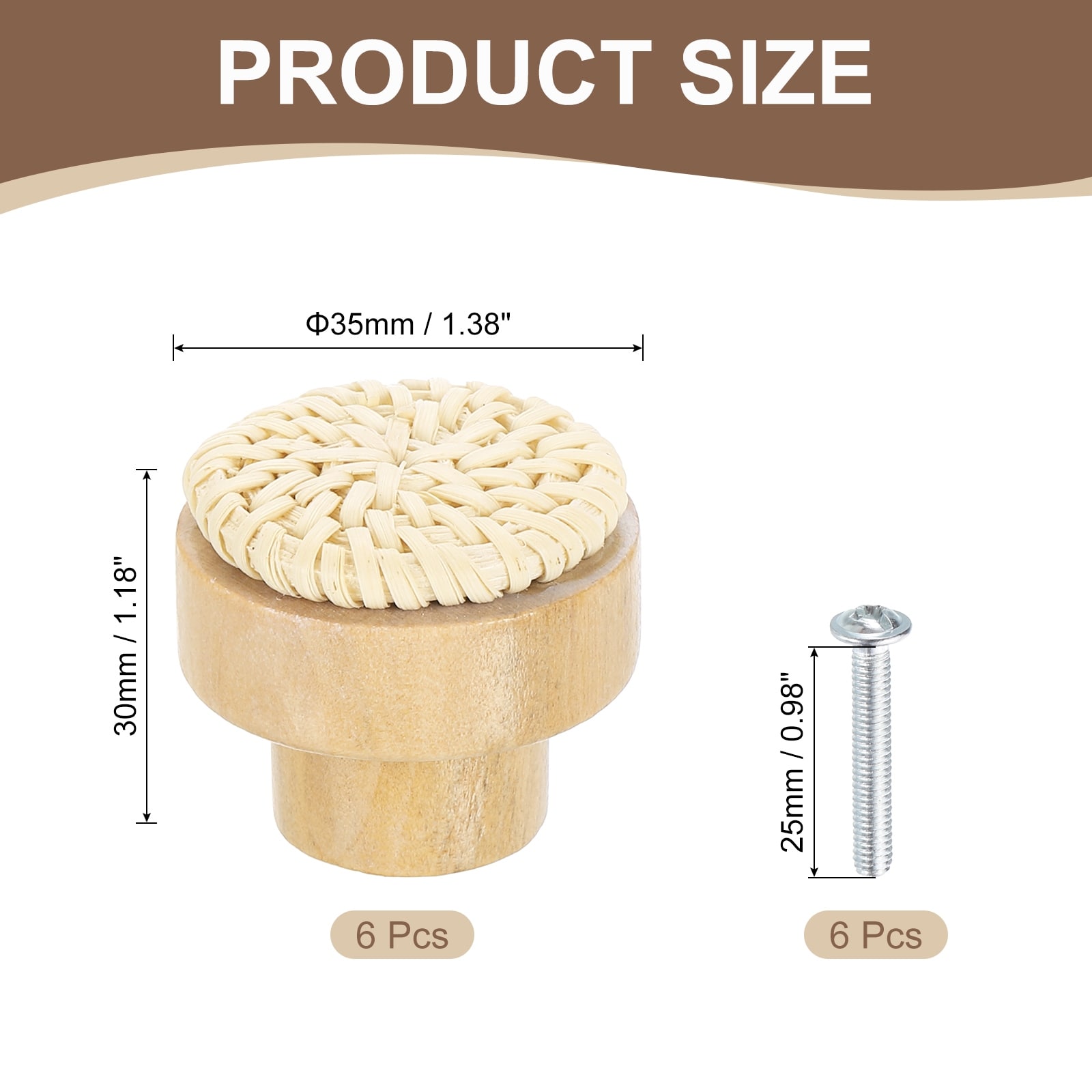 Rattan Dresser Knobs, Handmade Wicker Woven Drawer Knobs Round Beech Wood Cabinet Knobs with Screws for Furniture Wardrobe