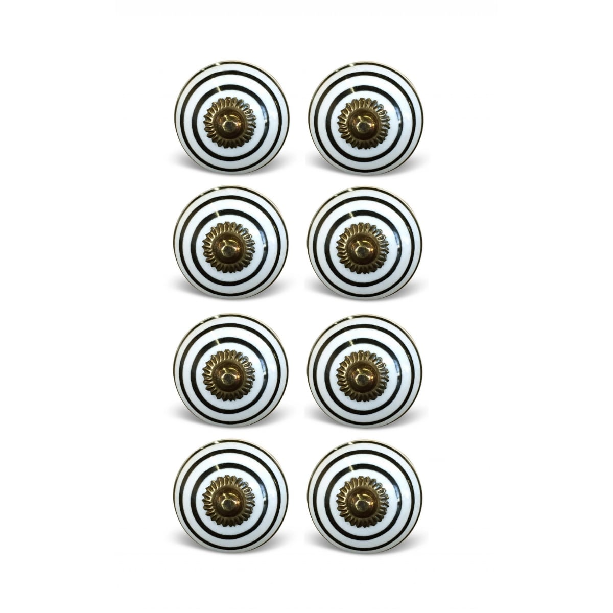 Set of 8 Hand-Painted Black & Silver Botanical Ceramic Cabinet Knobs Artisan Round Drawer Pulls with Metal Base