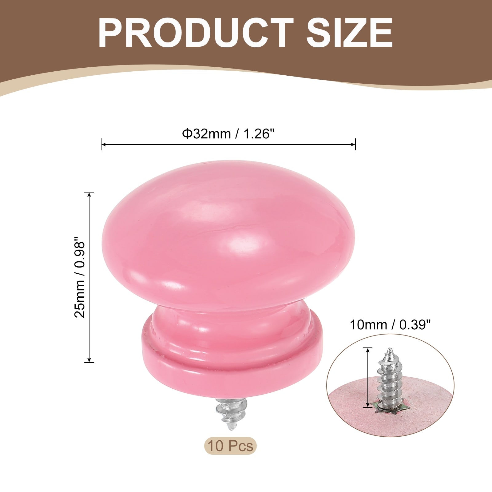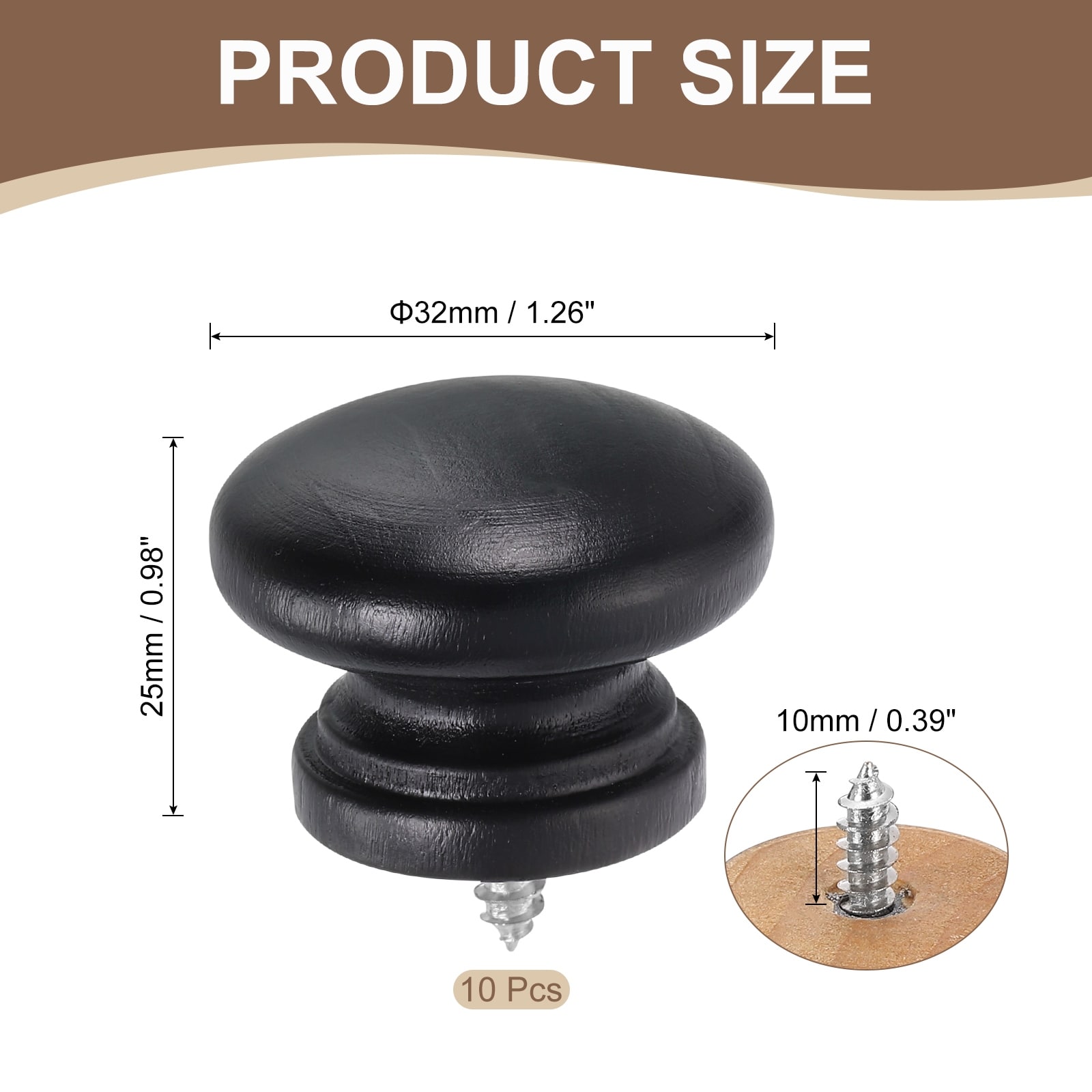 Round Wood Drawer Knob, Self-Tapping Solid Wood Handle Round Cabinet Knob Mushroom Shape Wooden Knobs for Dresser Wardrobe