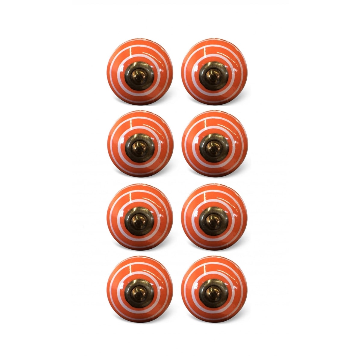 Orange and Black Ceramic Flower Knobs Set of 8 with Gold Finish and Screws - 1.5” x 1.5” x 1.5” (D x W x H)