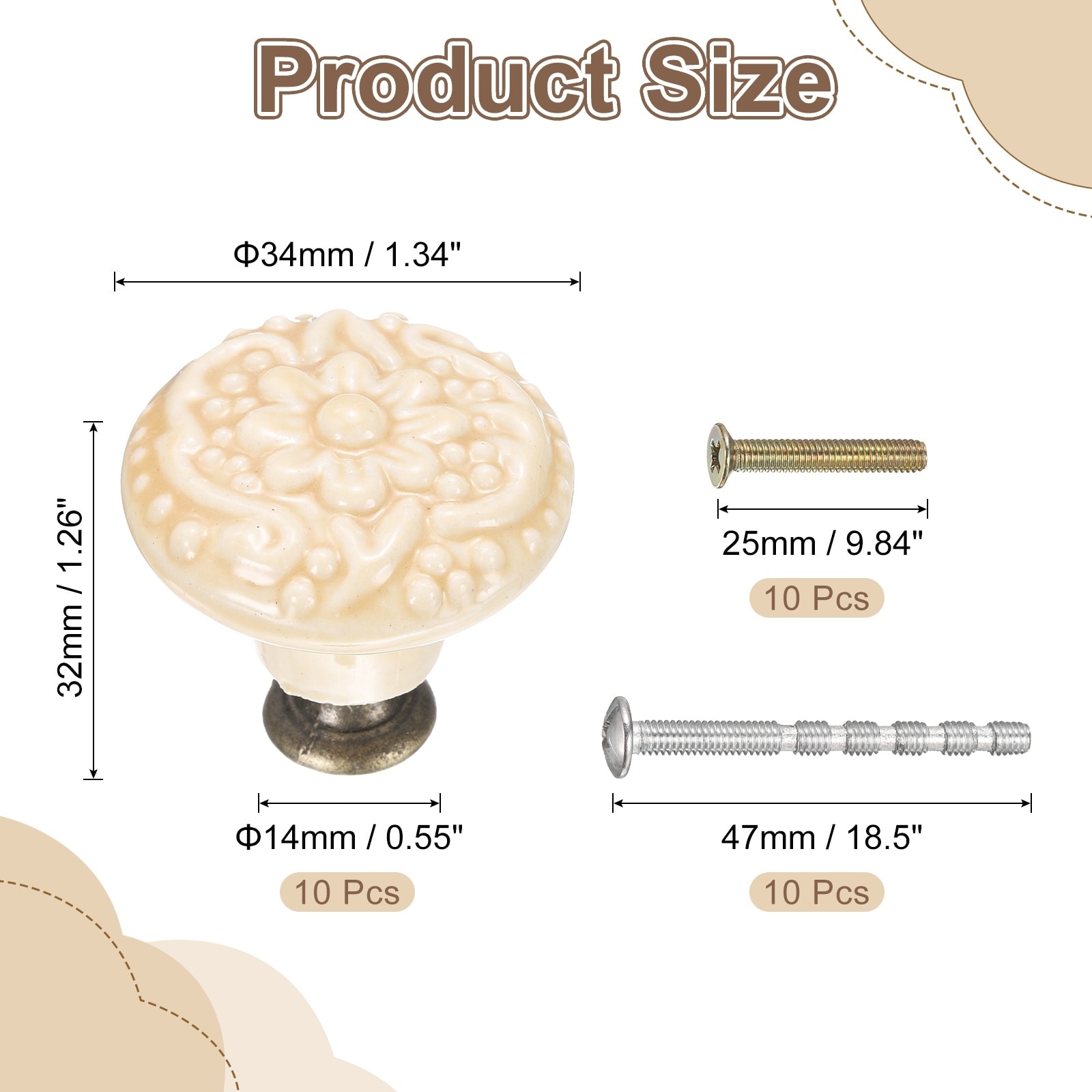 34mm Flower Pattern Raised Base Ceramic Knobs with Screws