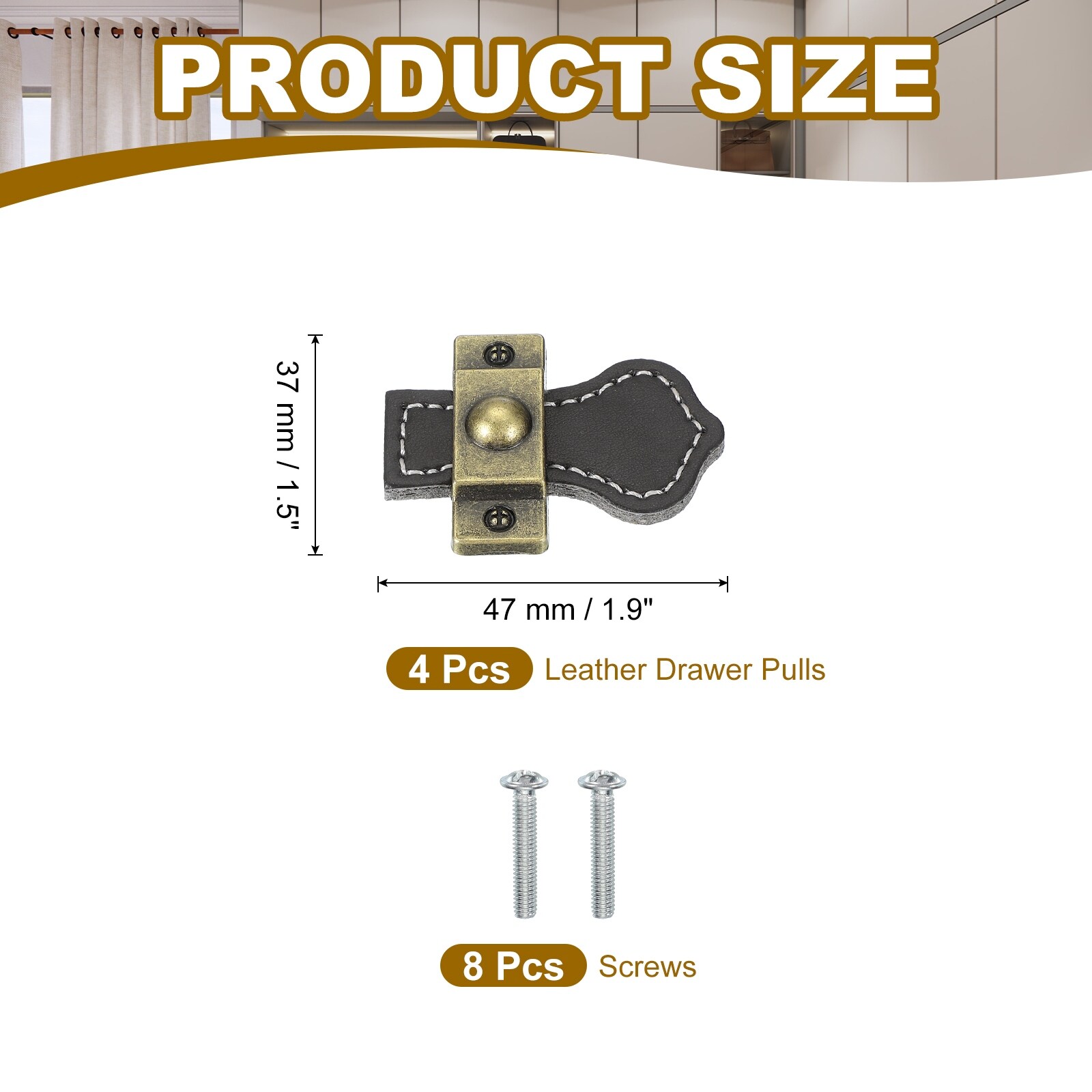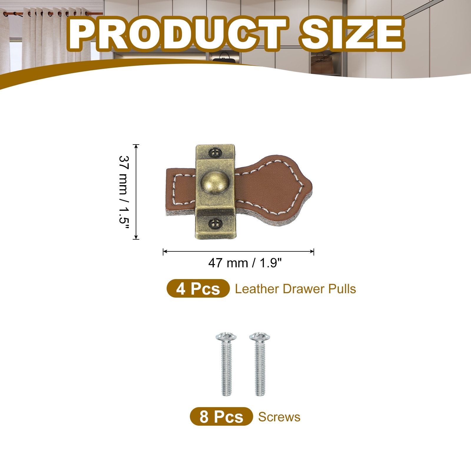 4 Pcs 2" Leather Drawer Pulls with Iron Sheet Single Hole 22mm Screw