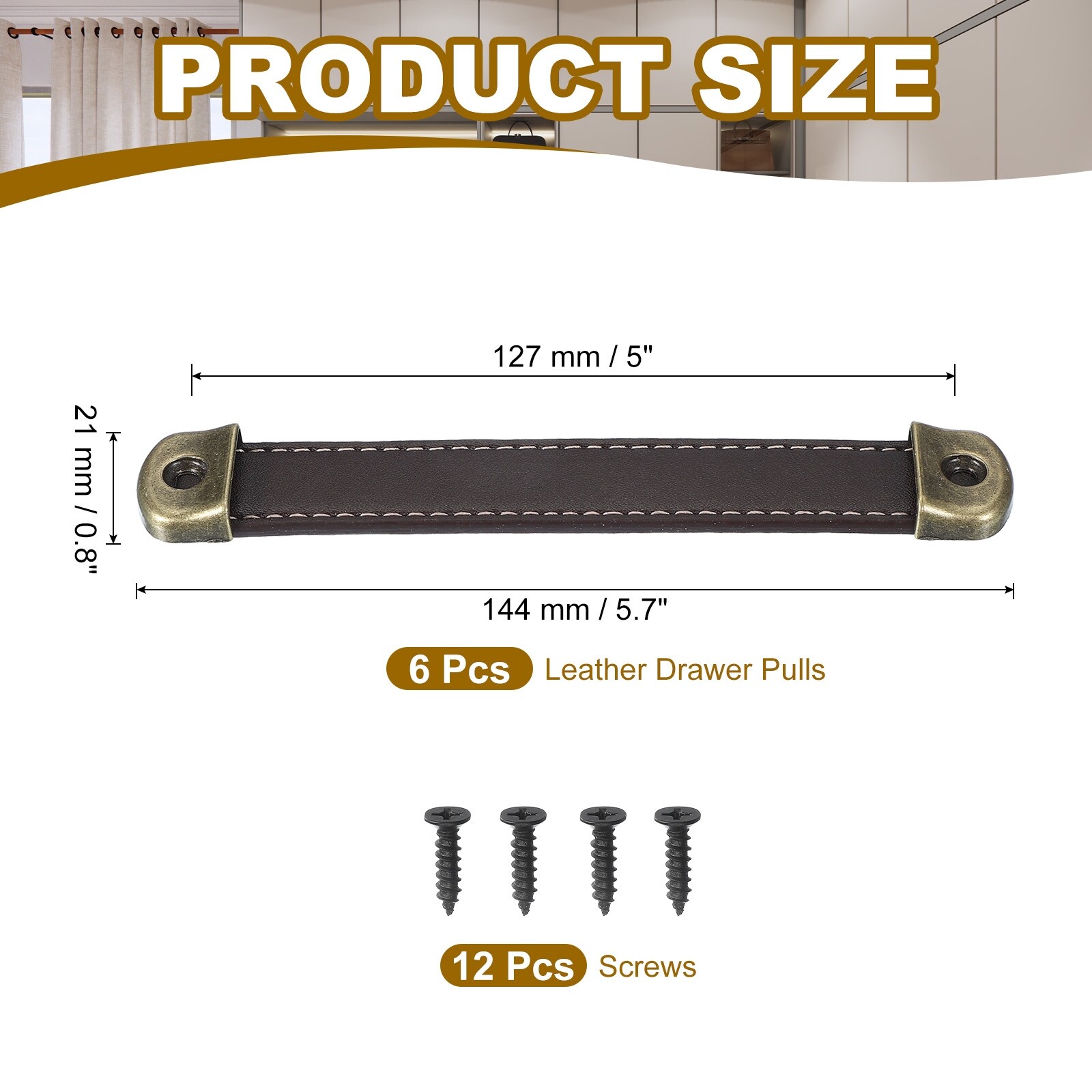 Leather Drawer Pulls with Iron Sheet, Leather Strap Trunk Handle Cabinet Knobs for Dresser Door Suitcases