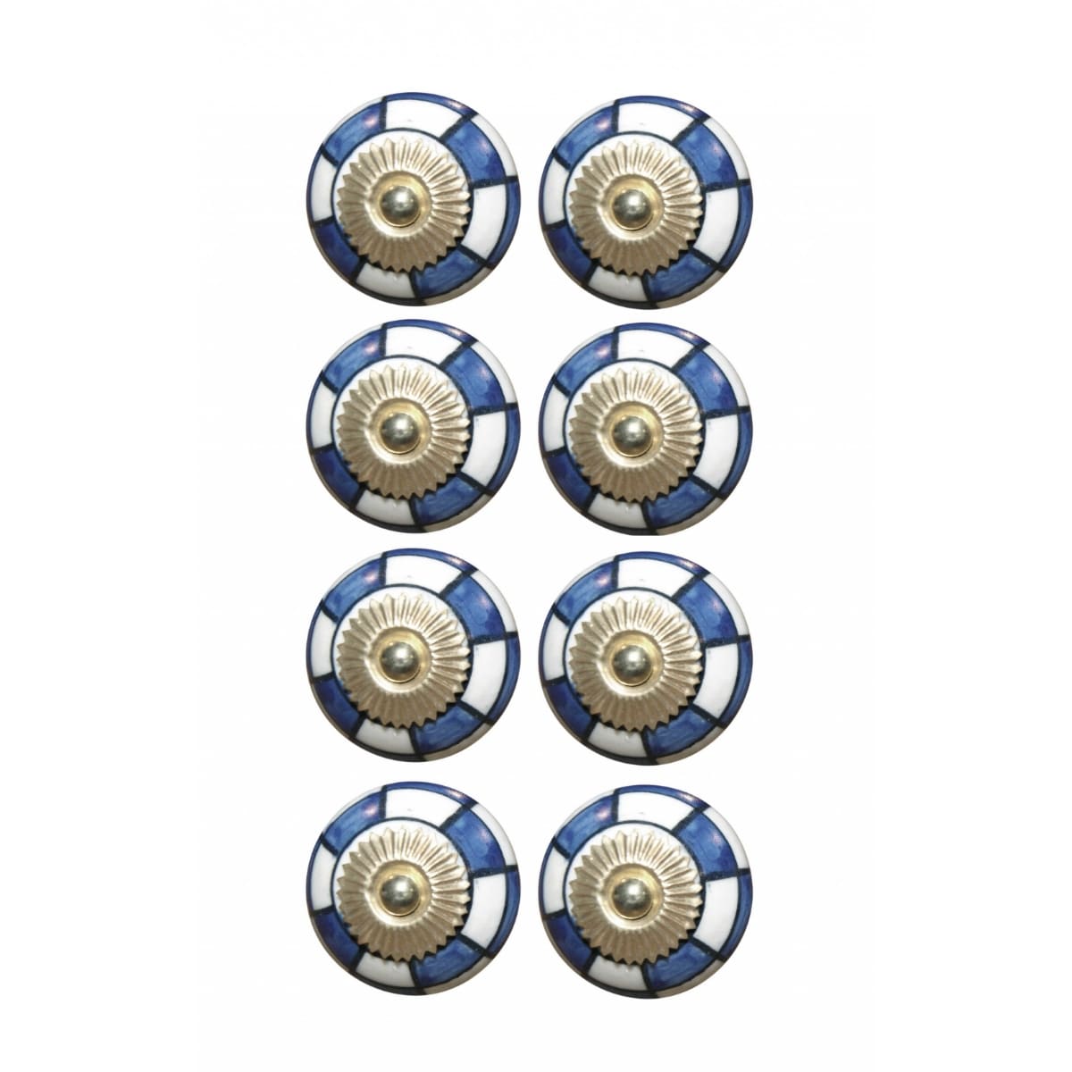 Blue and White Ceramic Geometric Drawer Knobs Set of 8 with Screws - 1.5” x 1.5” x 1.5” (D x W x H)