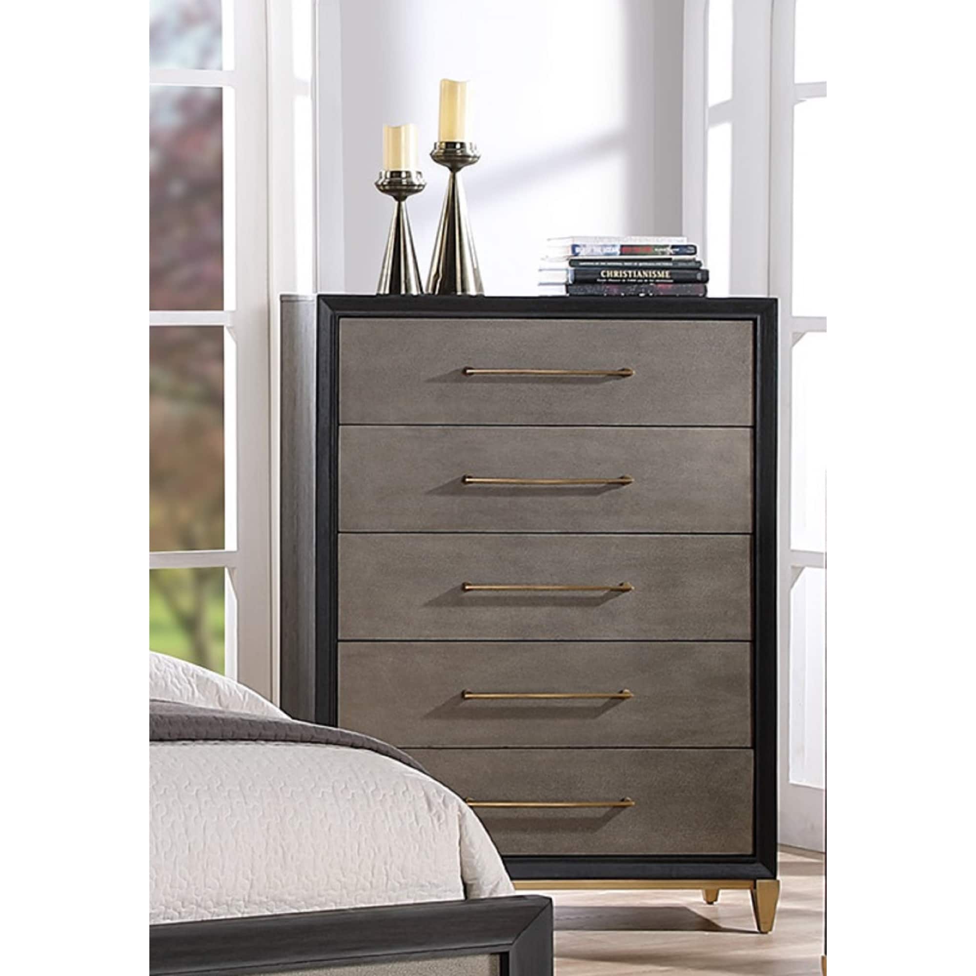 La Pierre 5-Drawer Chest with High-Gloss Finish and Metallic Handles