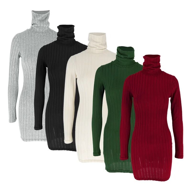 Womens Autumn Winter Turtleneck Long Sleeve Sexy Bodycon Knitted Mini Sheath Dress red l