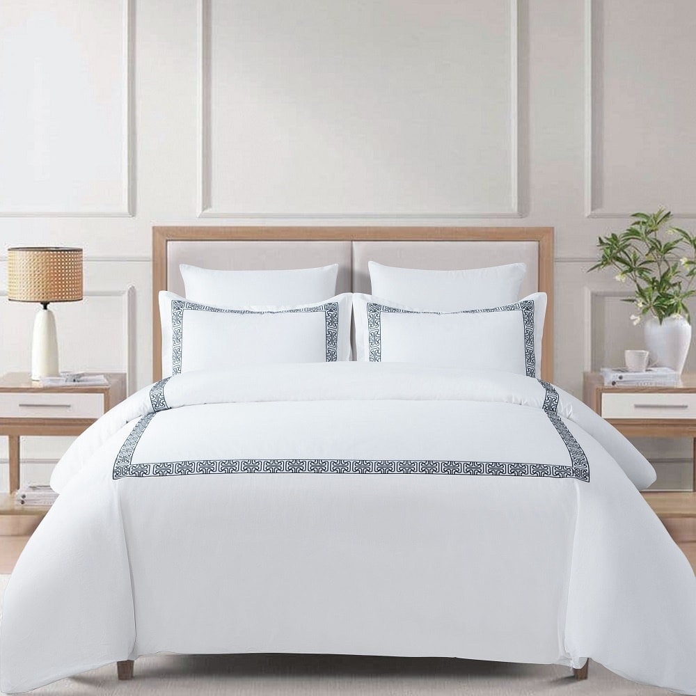 Wholelinens Cotton Percale Hotel Duvet Cover Set, Geo Embroidery