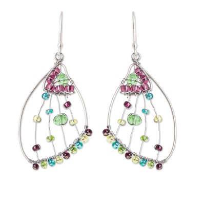 Bird Glory,'Sterling Silver Bird Drop Earrings with Amber and Garnet'