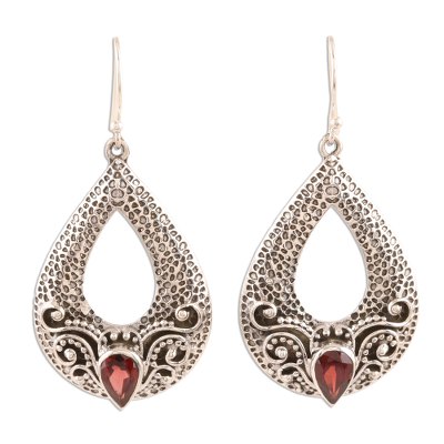 Glorious Delight,'Drop-Shaped Garnet Dangle Earrings from India'