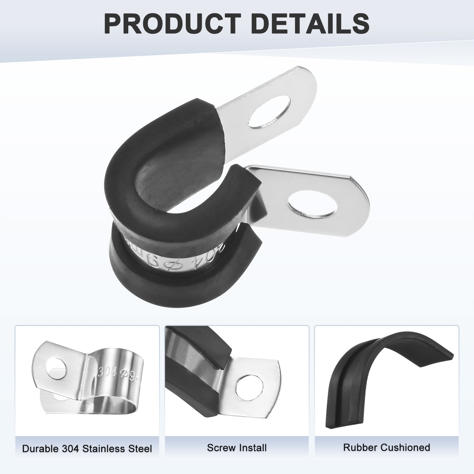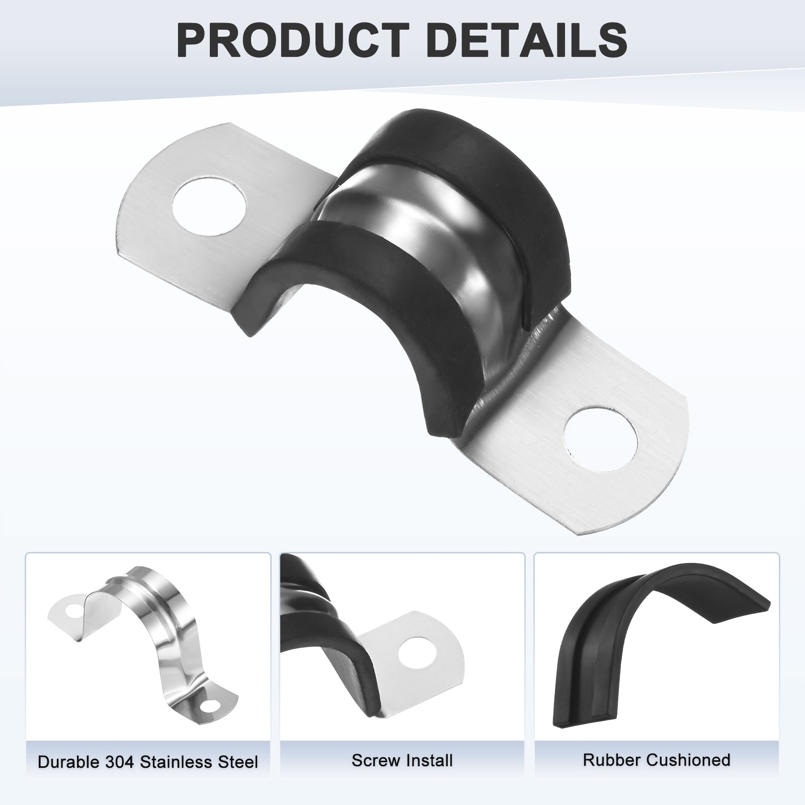 Cable Clamps, Stainless Steel Rubber Cushioned Insulated Cable Clamp Metal Holder for Tube/Wire/Pipe - Silver