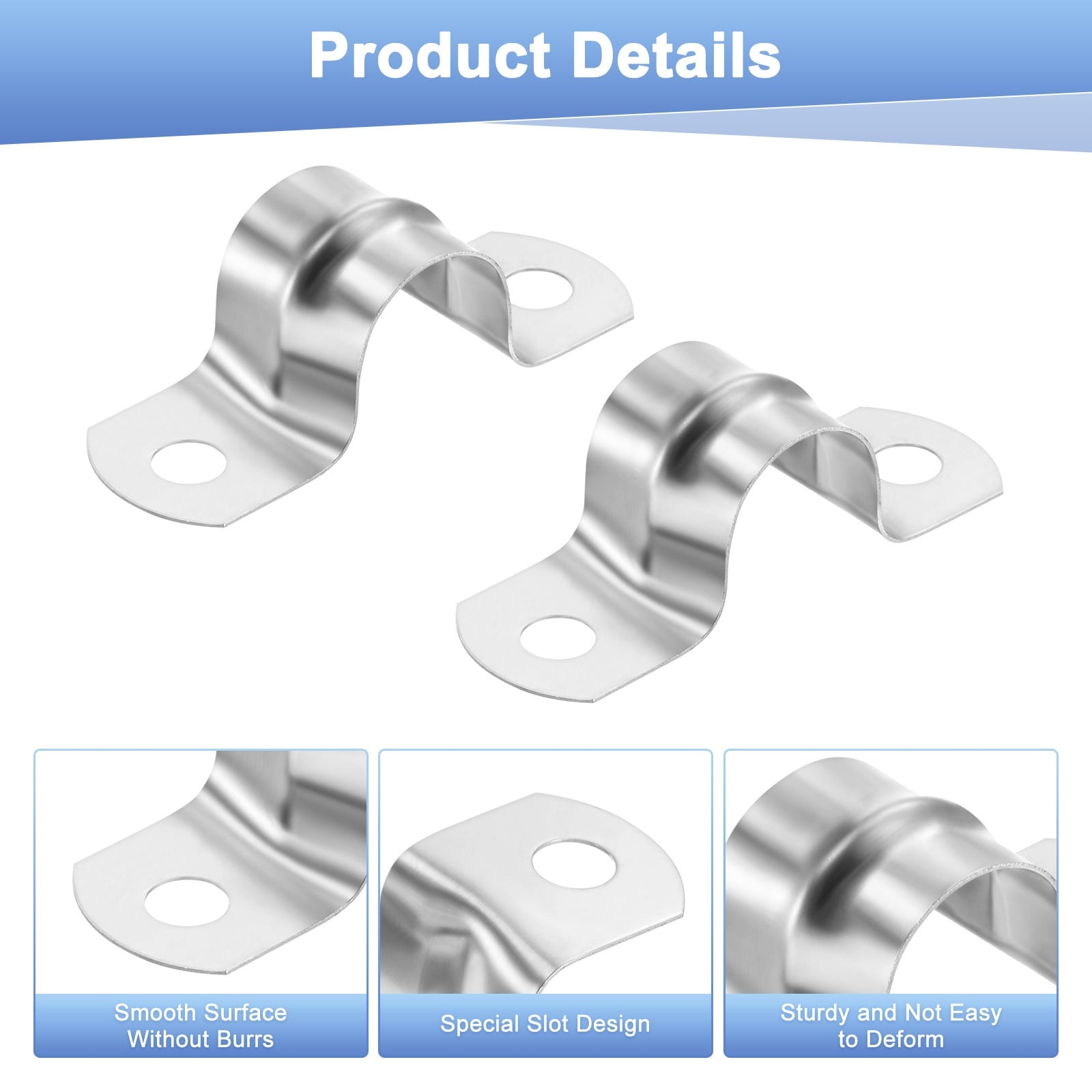 Conduit Clamps, Stainless Steel Rigid Pipe Strap U Bracket Pipe Clamps with Holes for Plumbing/Conduit - Silver