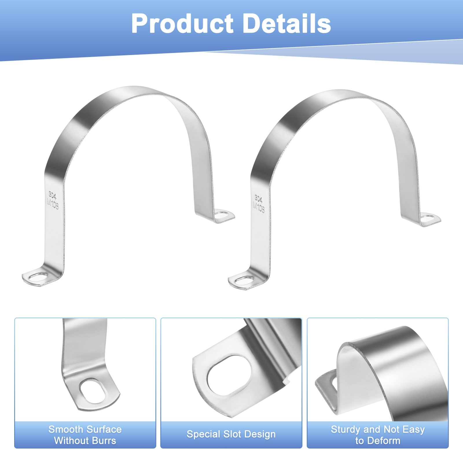 Conduit Clamps, Stainless Steel Rigid Pipe Strap U Bracket Pipe Clamps with Holes for Plumbing/Conduit/Wire/Pipe - Silver