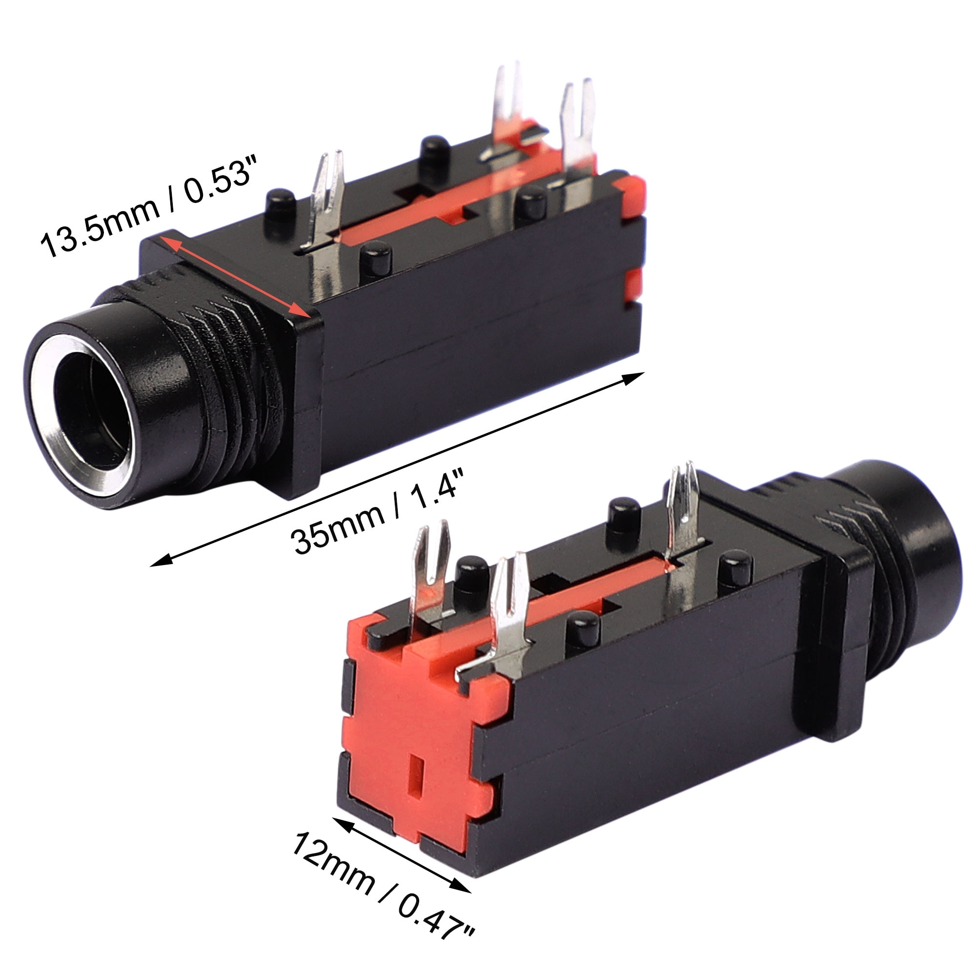 10pcs 6.35mm 1/4 Inch 3Pin Mono Jack Panel Mount PCB Connectors Headphone Socket - Black - 6.35mm 1/4"