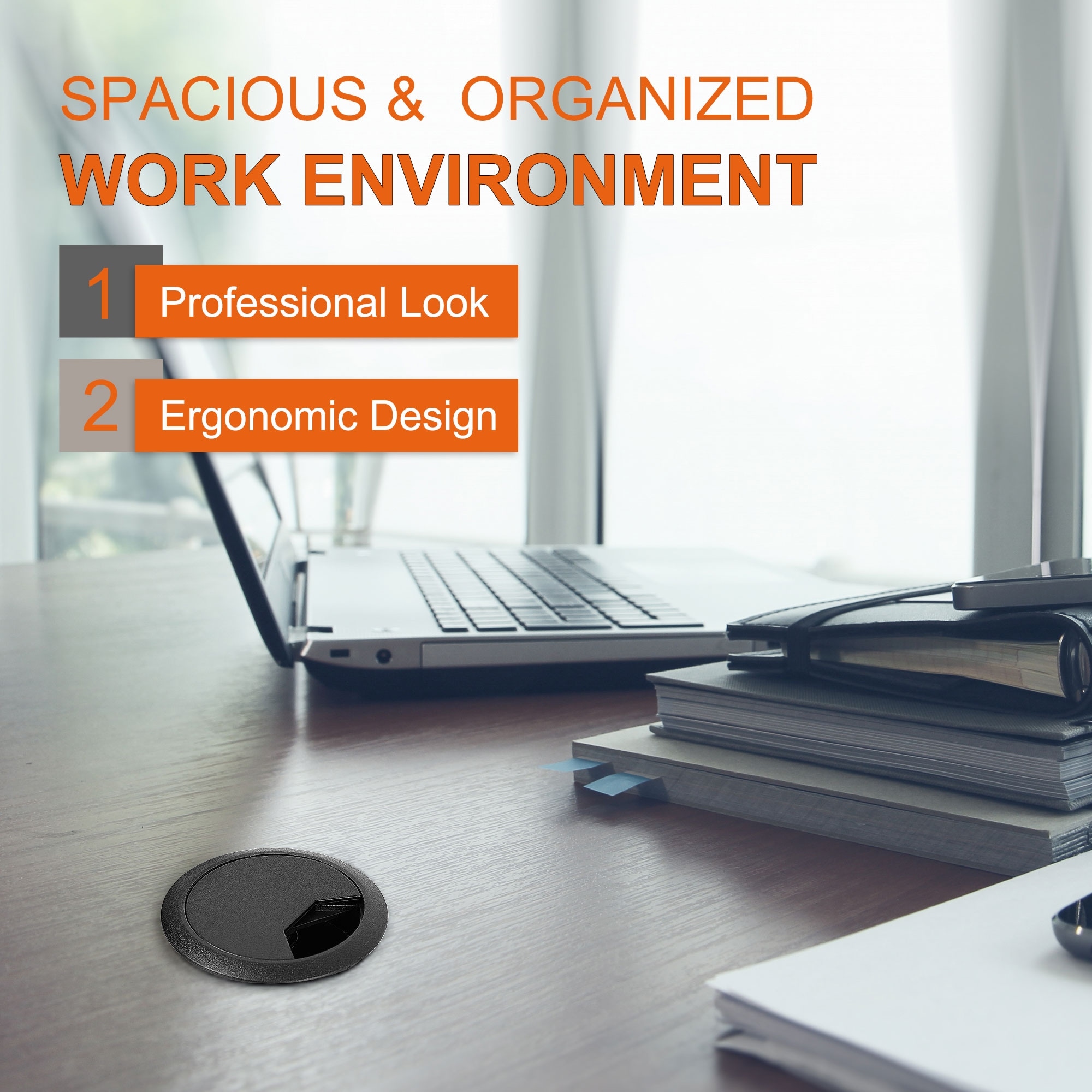 2 Pcs 50mm Black Desk Grommet Wire Cord Cable Hole Cover for Office PC Table - 2 Pcs