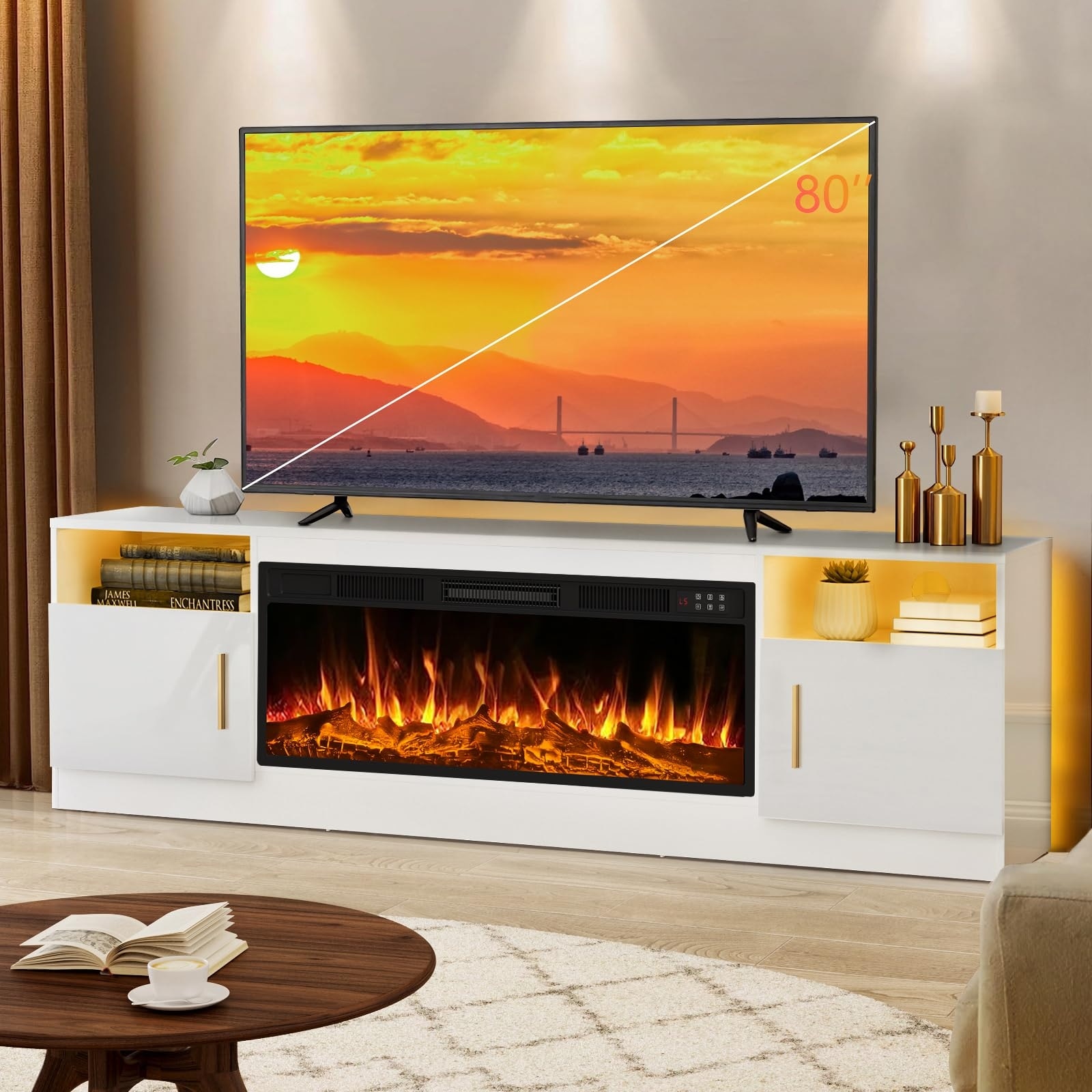 70" Glass DoorTV Stand for TVs up to 73" with 36" Electric Fireplace Included