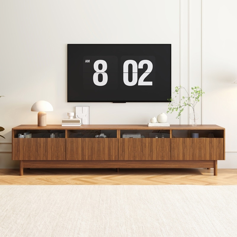Living Room TV Stand with Glass Doors and 4 Drawers for TVs up to 95"