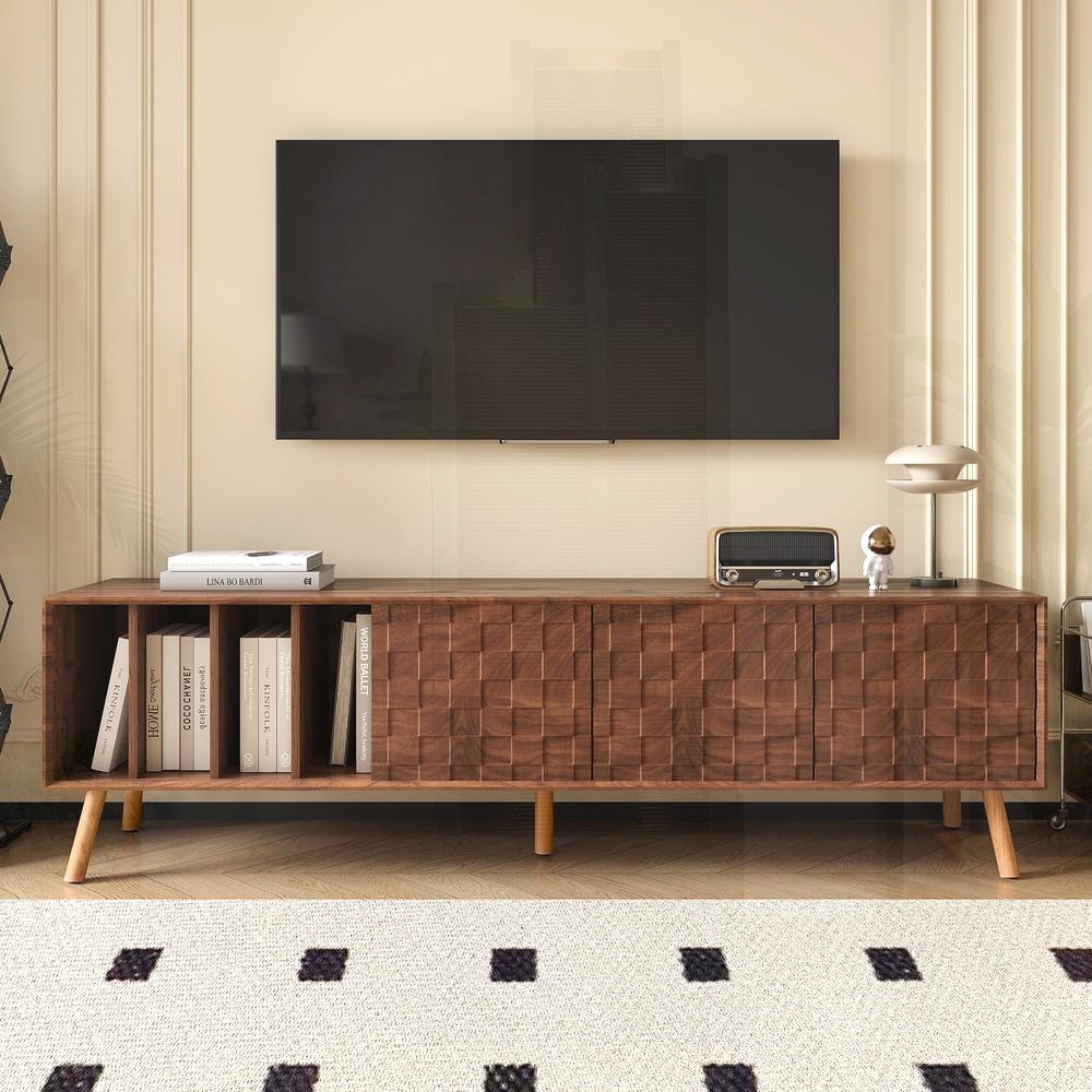 70 Inch Mid Century TV Stand for 80 Inch TVs with Solid Wood Legs