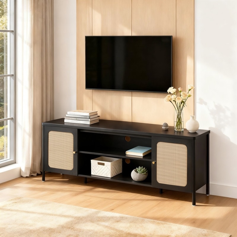 Mid Century Modern Rattan TV Console for Living Room and Media Room