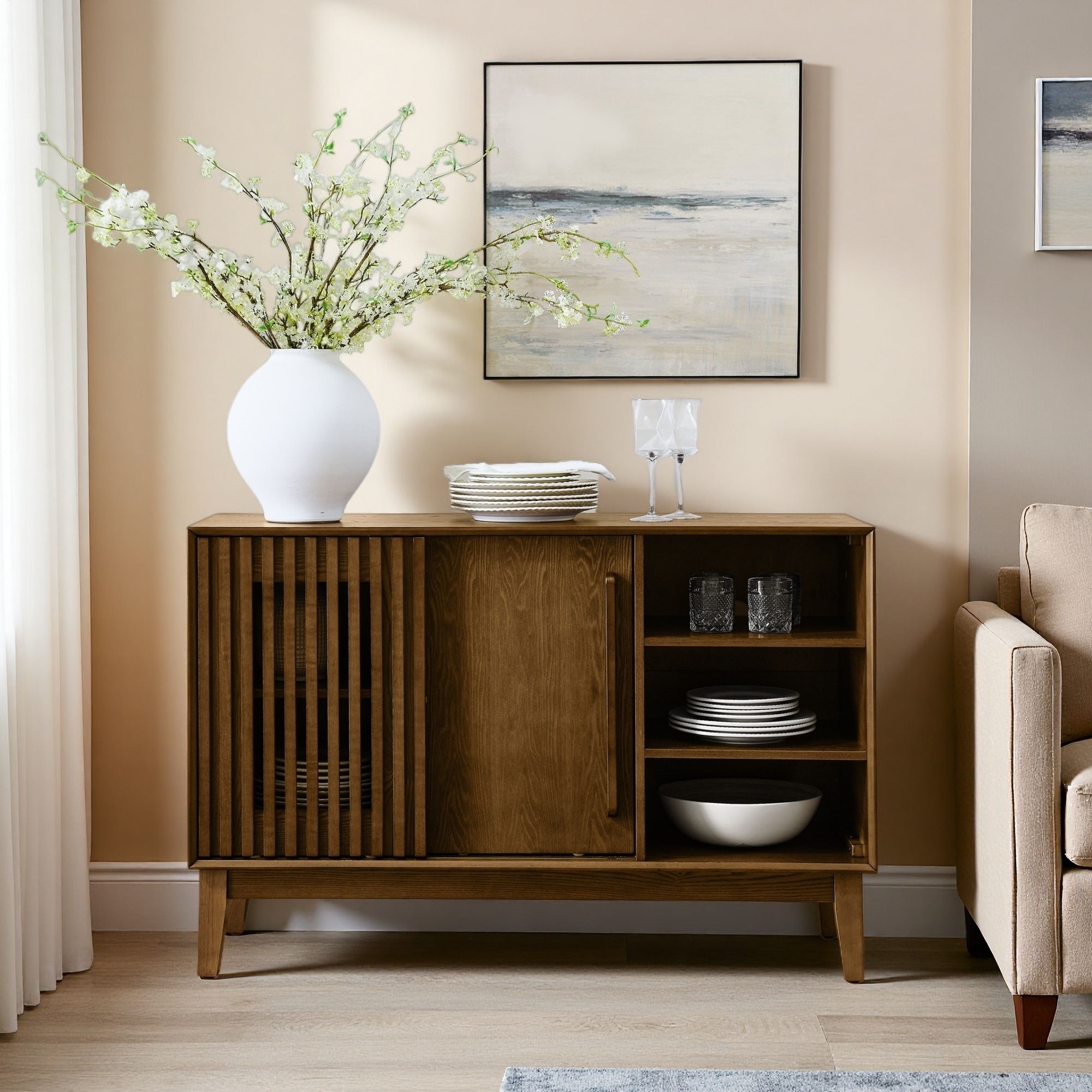 47.3" Farmhouse Sideboard Buffet with Rattan Doors, Solid Wood Feet & Storage