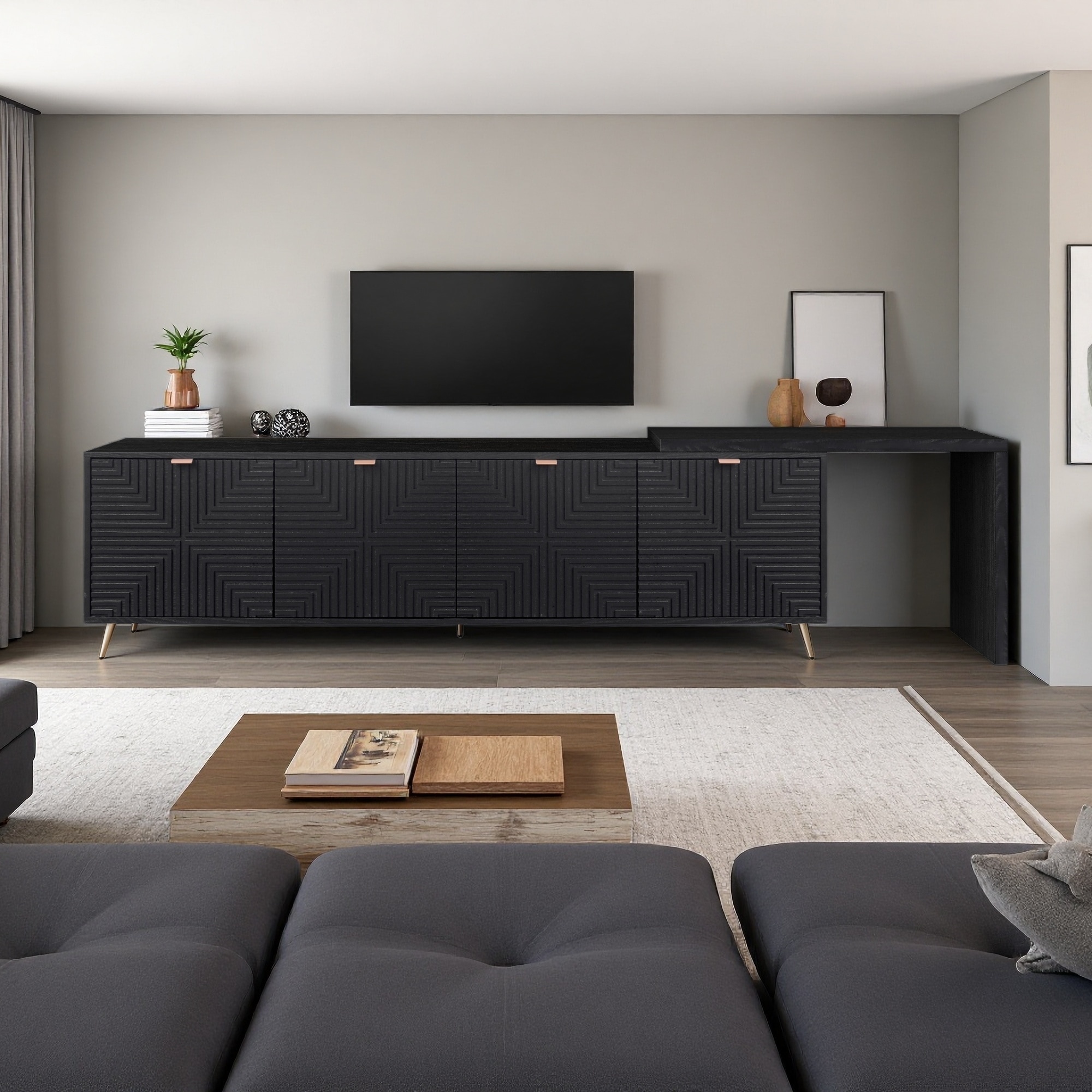 Extendable 102-Inch Modern TV Stand Media Console with 3 Drawers