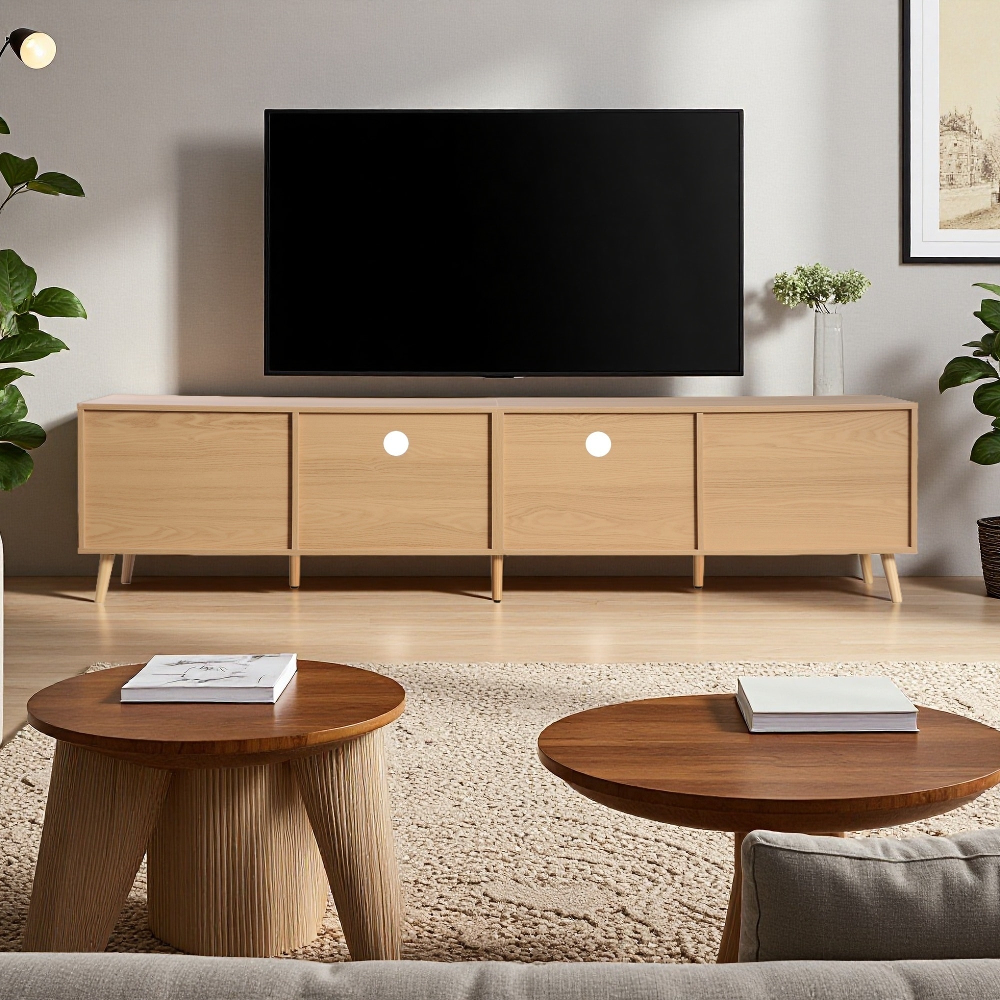 78.7" MDF Rattan Modern Farmhouse TV Stand with Solid Wood Legs