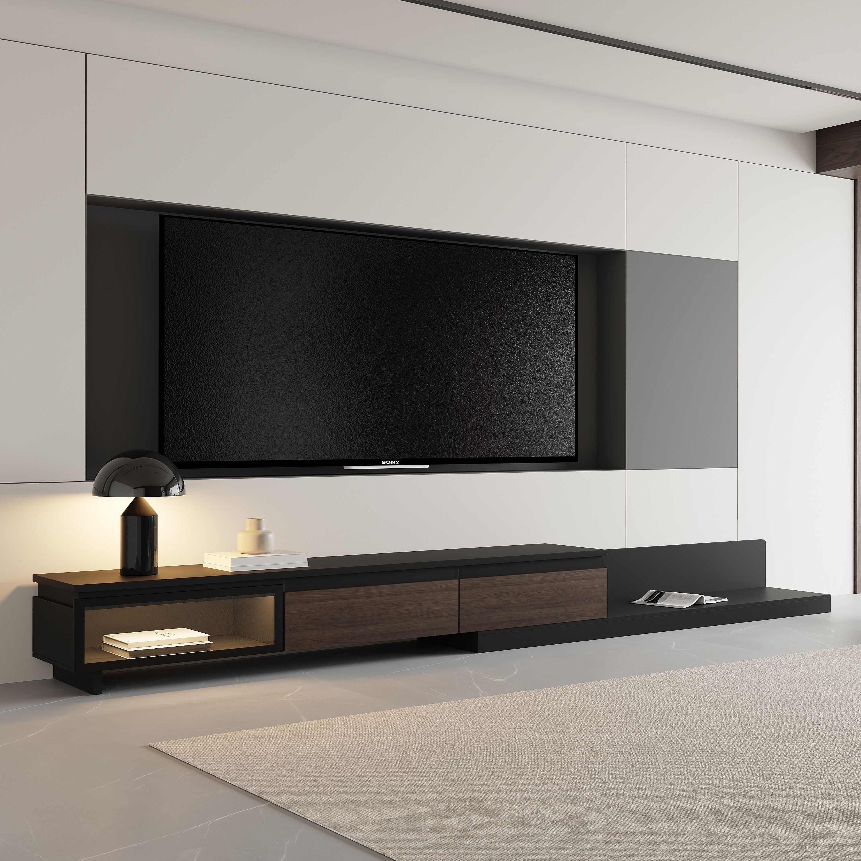 Modern Extendable TV Stand For TVs Up To 85'' With Storage Drawers And Glass Door Cabinet Led Lights - 131.89''