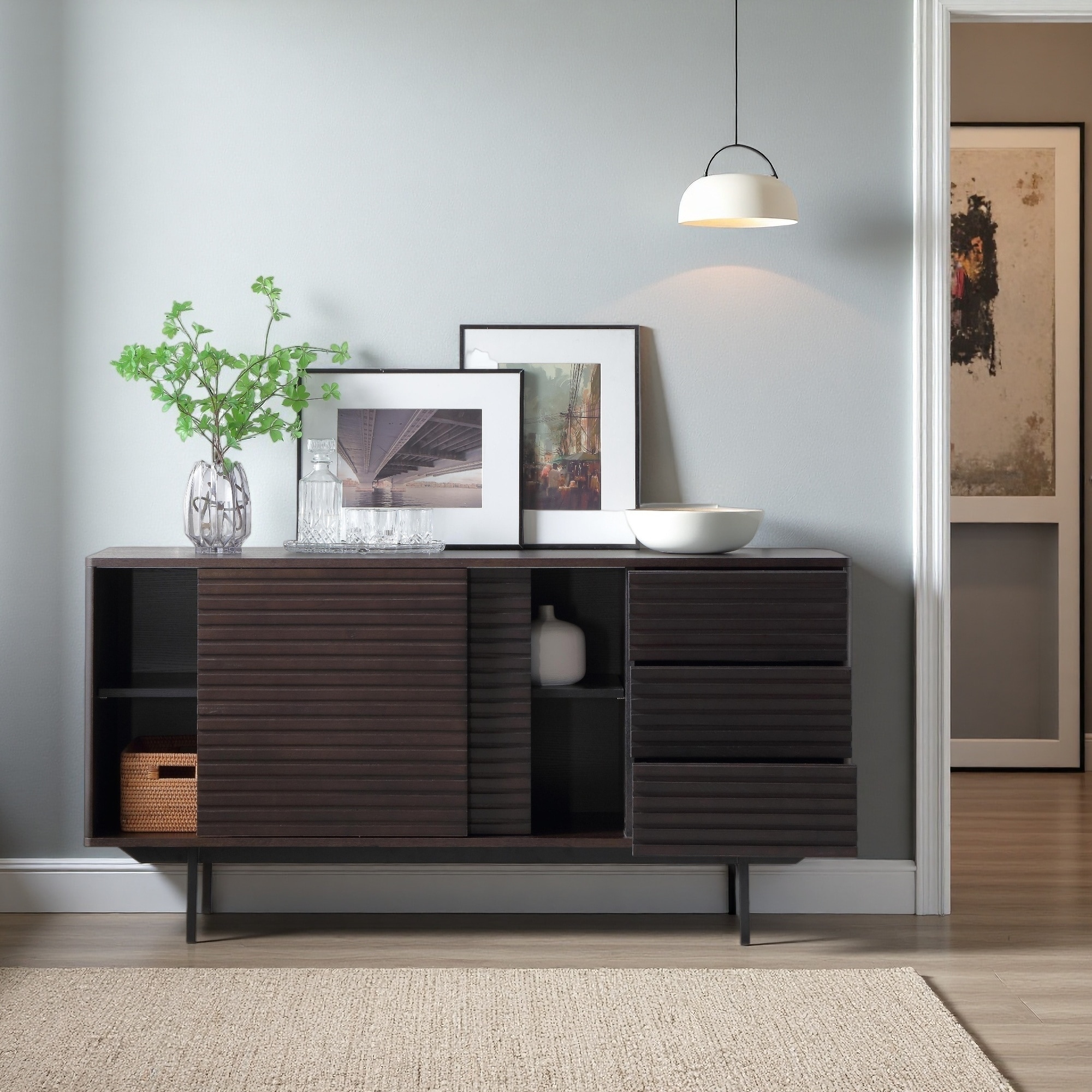 Mid-Century Modern Sideboard Buffet Cabinet with Drawers & Shelves, TV Stand with Cable Management for Living Room or Kitchen
