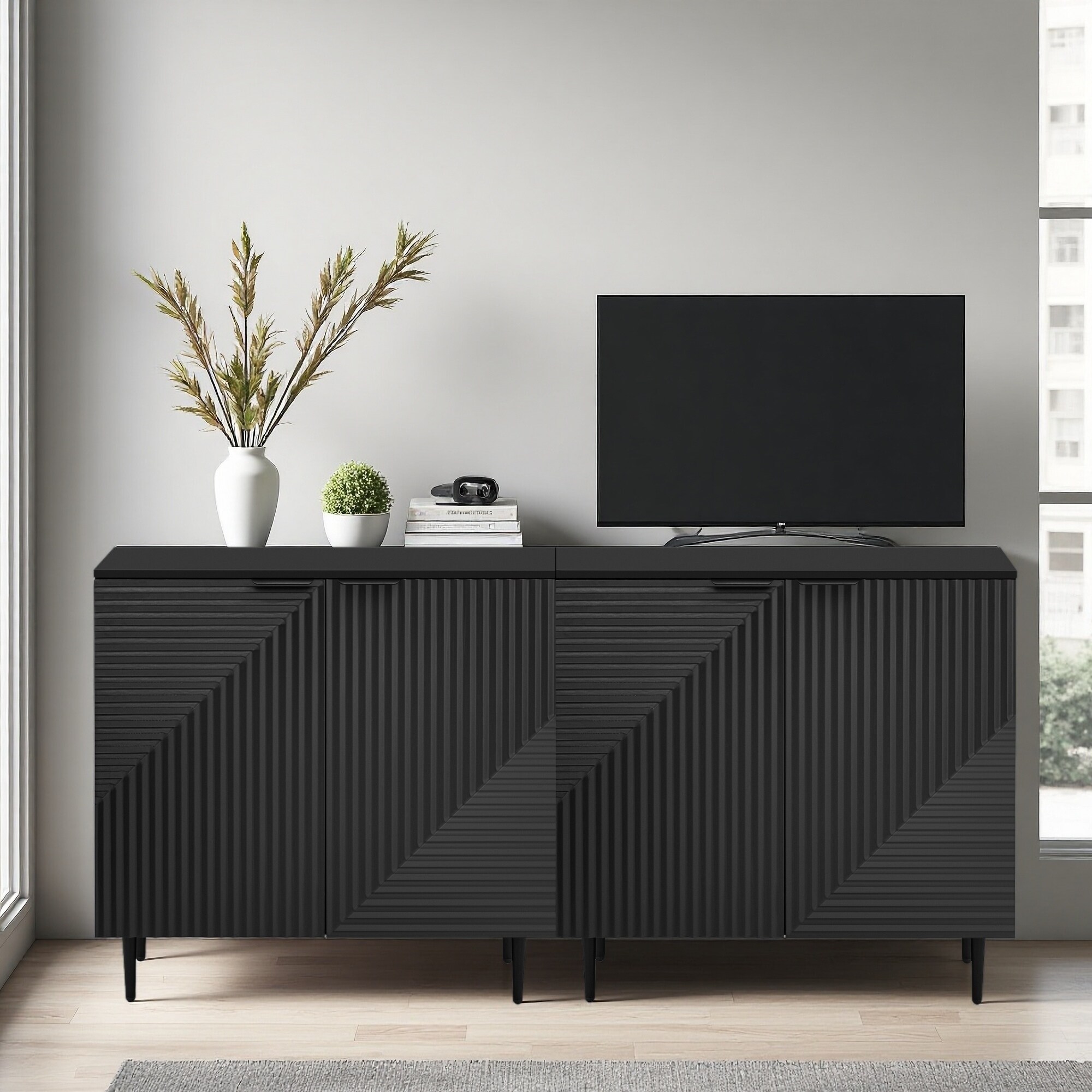 70" Modern TV Stand Set of 2 with Adjustable Shelves & Geometric Door Design