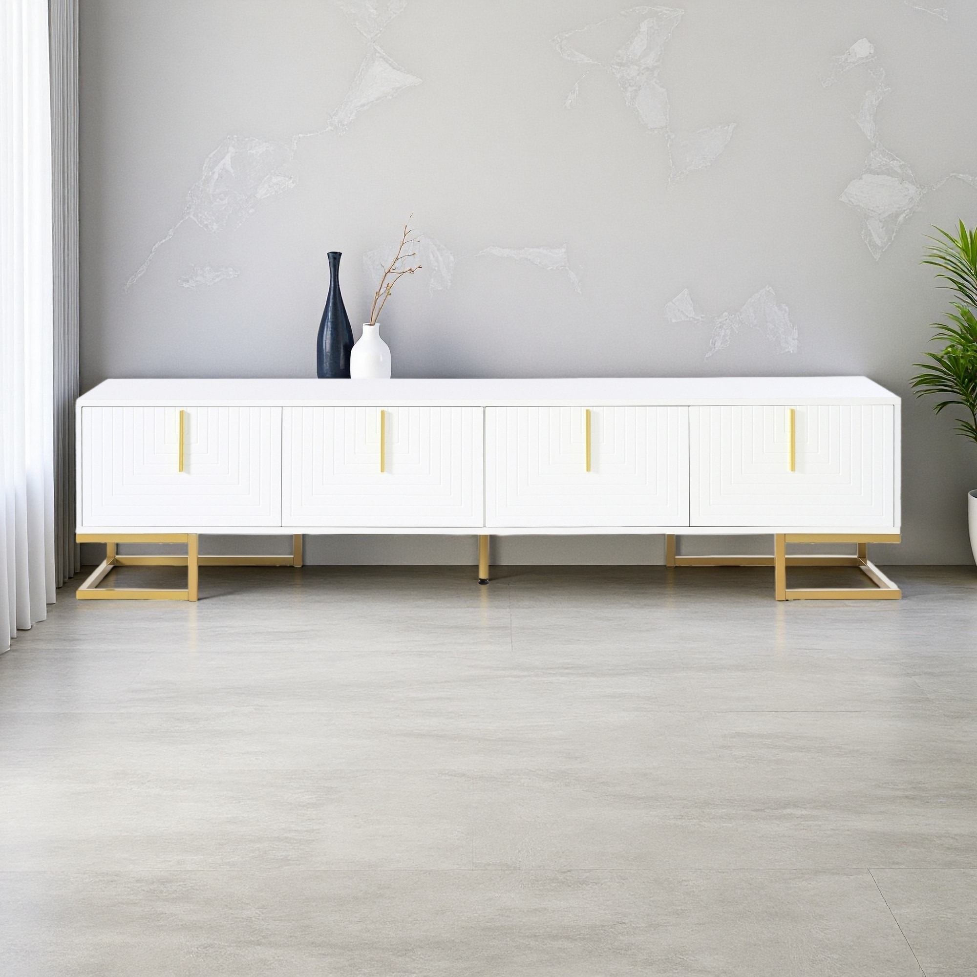70.8" MDF Modern TV Stand with Metal Legs, Gold Handles & Adjustable Shelves