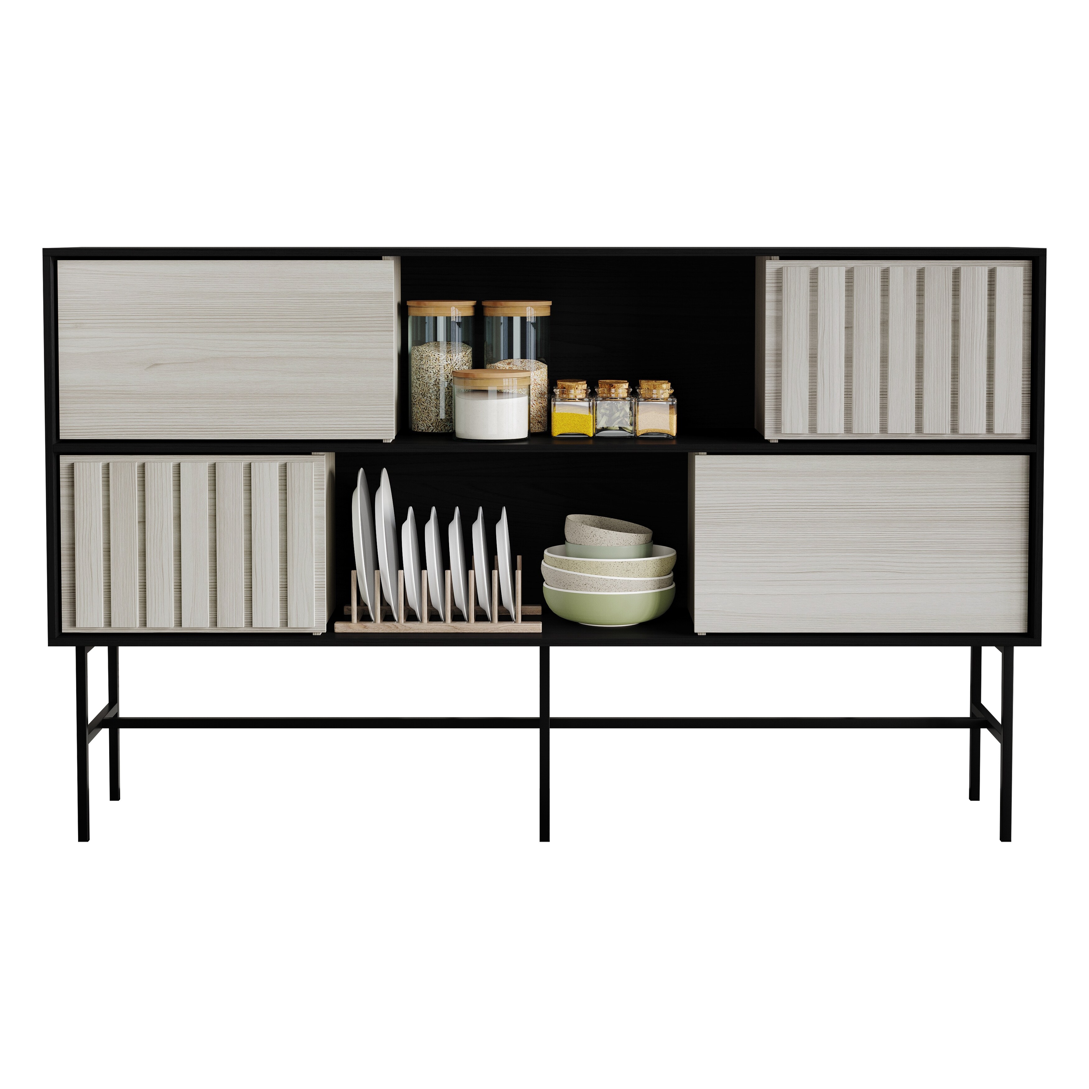 68" Mid Century Fluted TV Console Table Sideboard Cabinet with Cabinets Storage - 68inch
