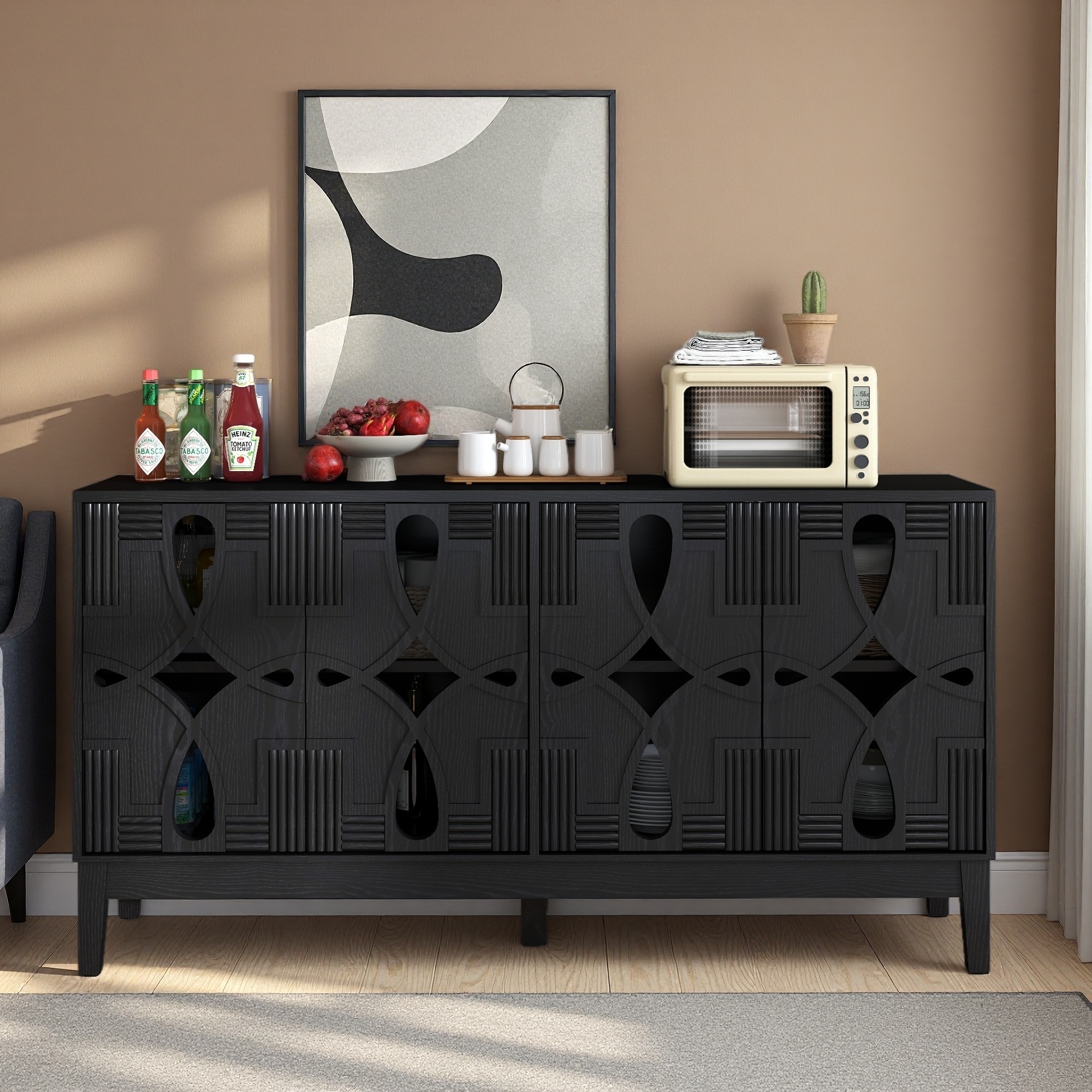 60.5" Mid Century Modern Sideboard Buffet with 4 Doors, Adjustable Shelves, Outlet Holes, Storage Cabinet