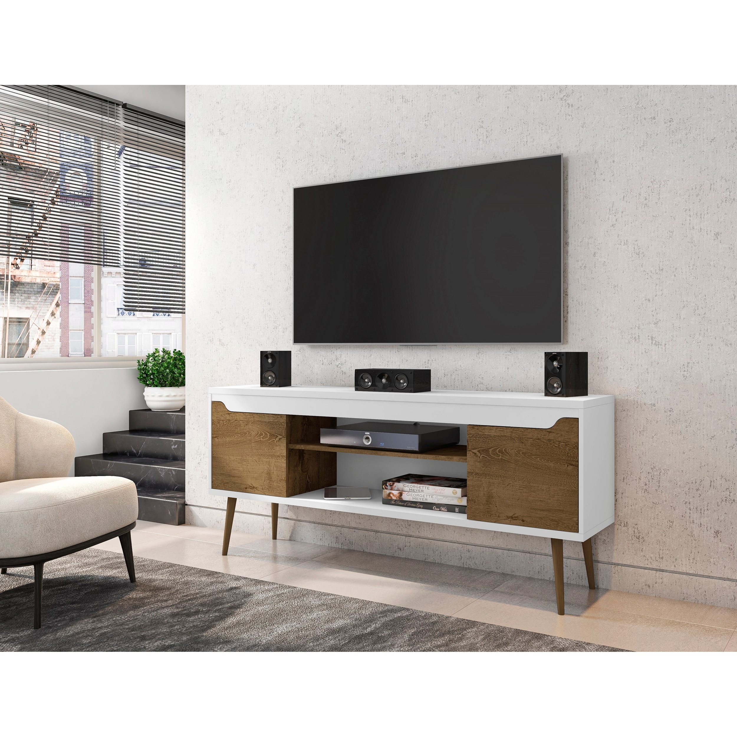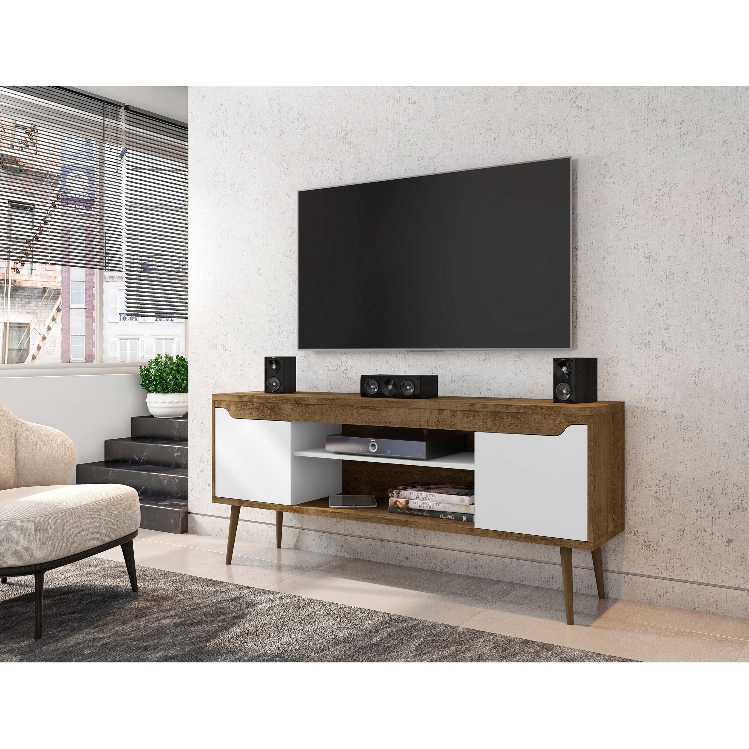 Mid-Century Modern TV Stand with Spacious Storage and Splayed Legs for Living Room and Bedroom