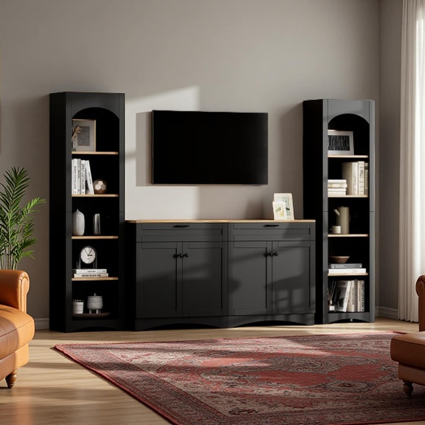 102" Rustic Farmhouse Entertainment Wall Unit, 3-Piece Modular Media Console, Adjustable Shelves & Drawers