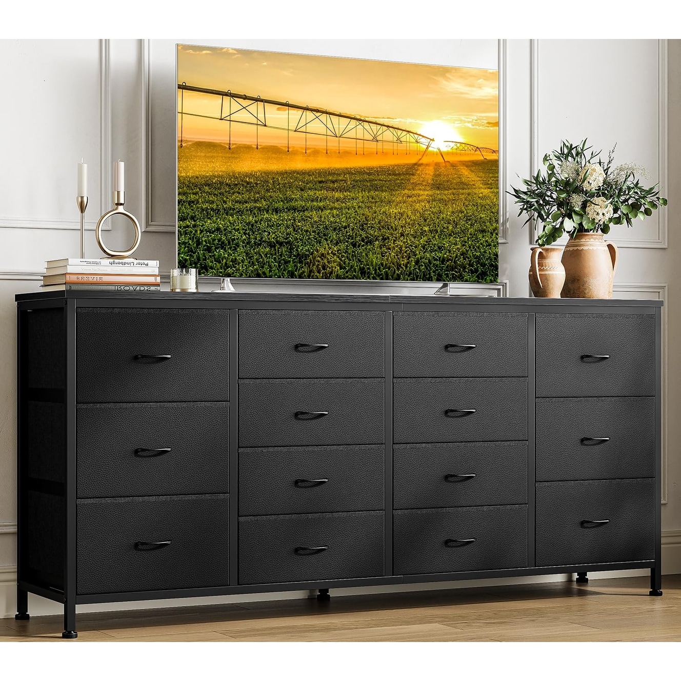 63" W Dresser TV Stand for 65/70/75 Inch TV, 14 Drawer Entertainment Center with Power Outlets