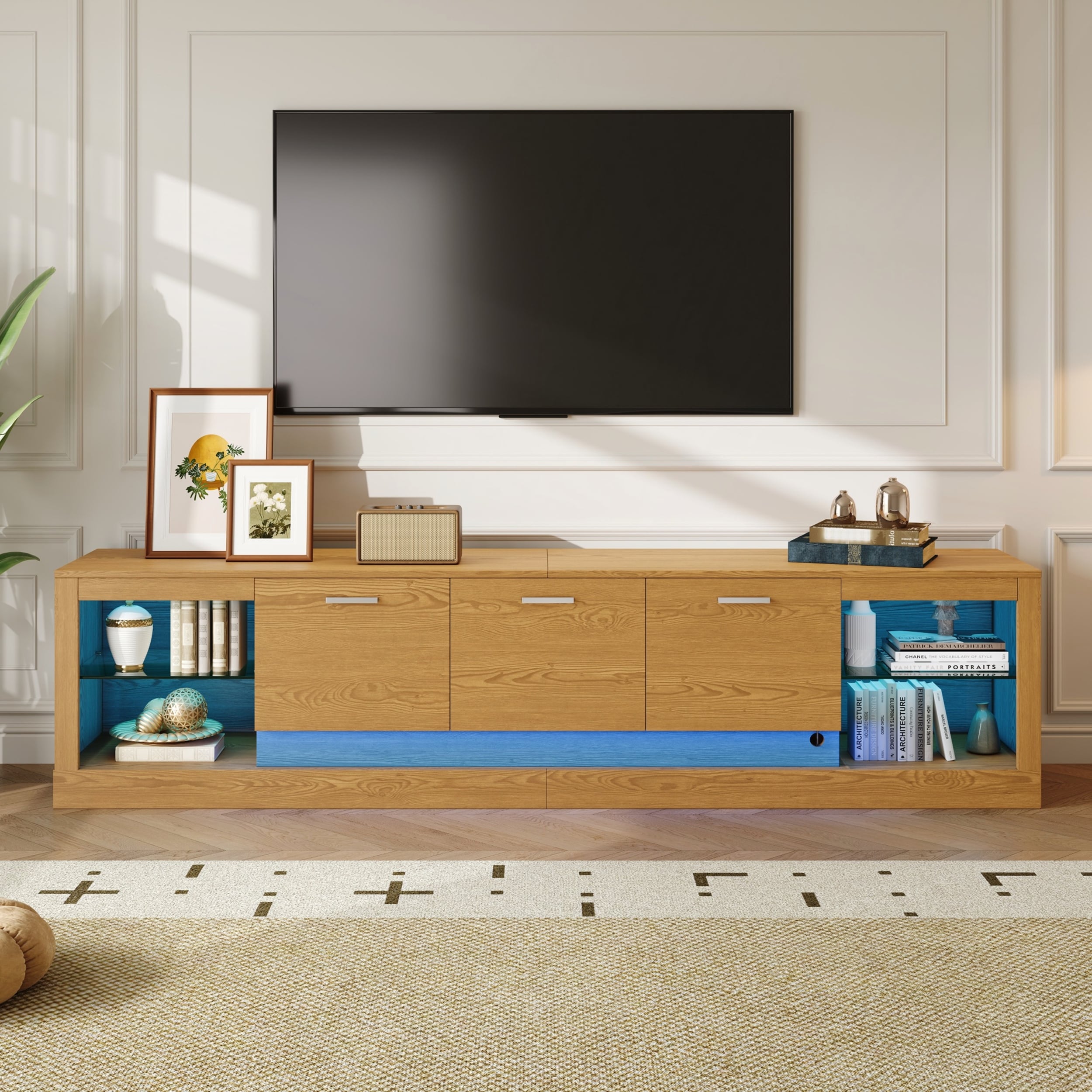 78in Modern TV Stand with 6 Cabinets and 2 Open Compartments