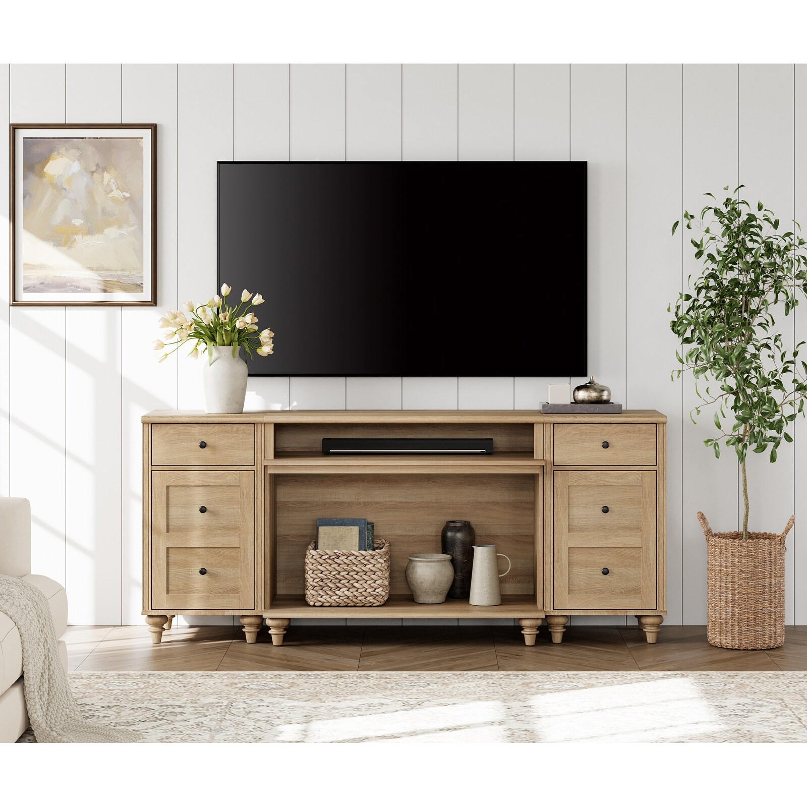 Farmhouse TV Stand with/without Fireplace, White/Oak