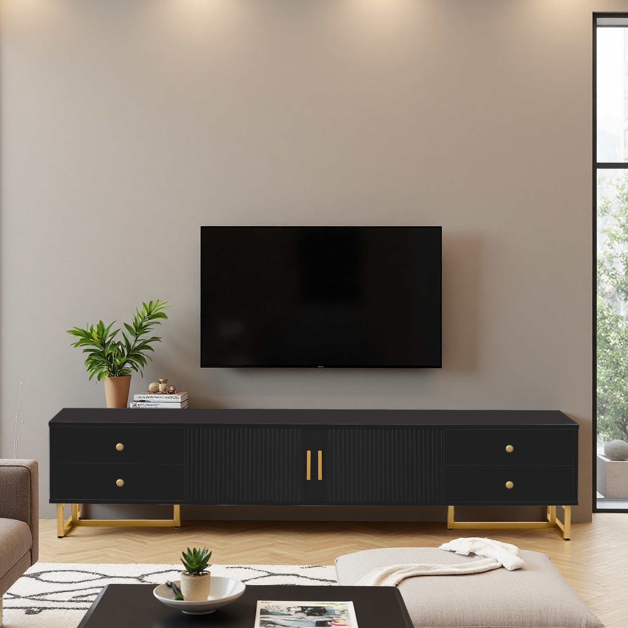 70.9" MDF Modern TV Stand with Four Drawers, Sideboard with One Cabinet for TVs up to 80" with Metal Legs for Living Room