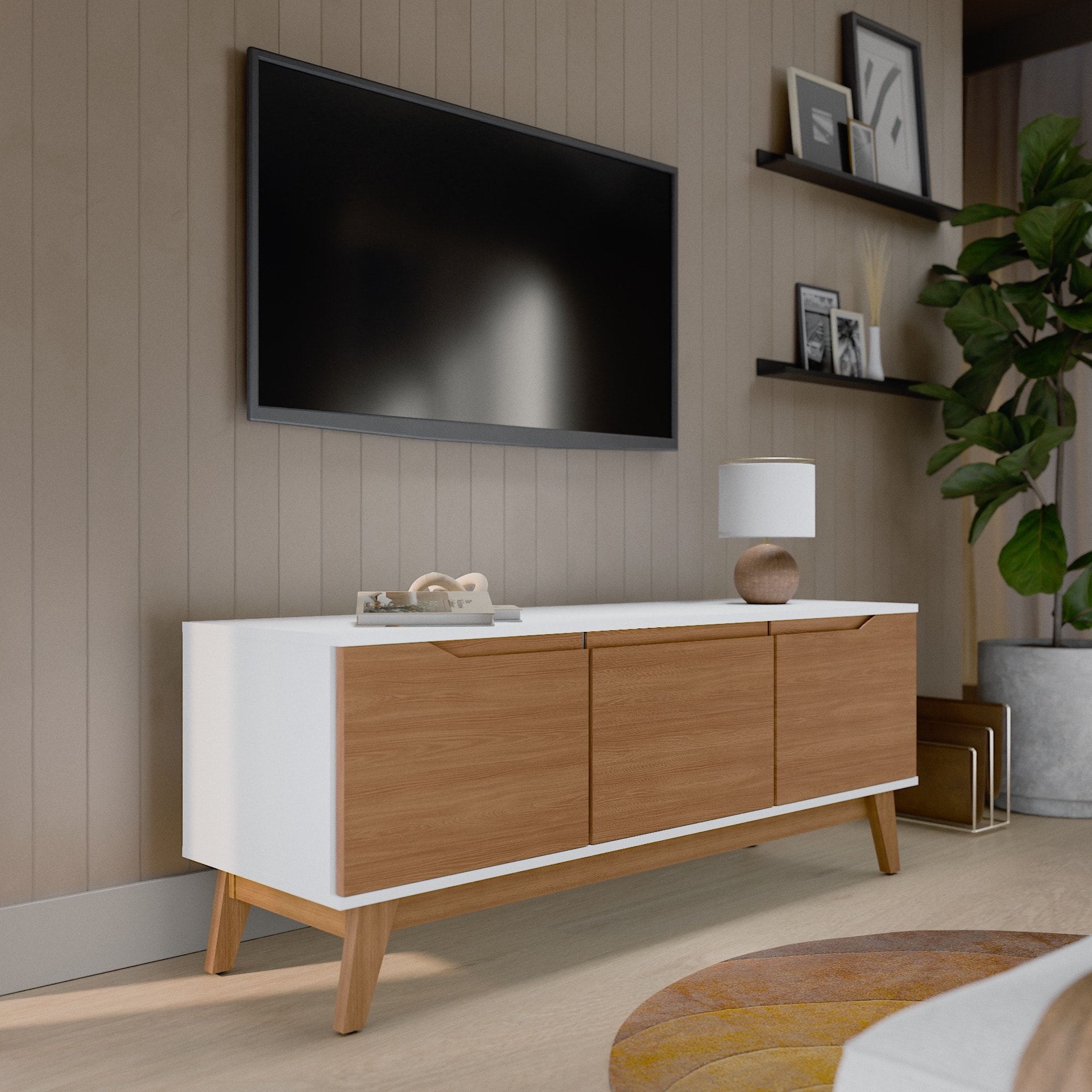 Kappesberg Athens 3-Door Rack/Tv stand with Soft-Close Doors and Built-In Handles
