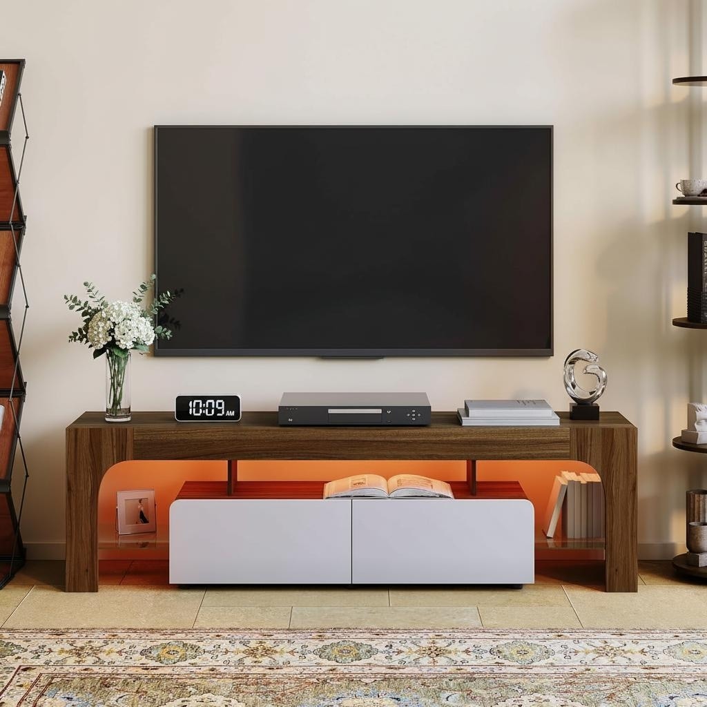 TV Stand with LED Lights, with 2 Drawer & Open Shelf