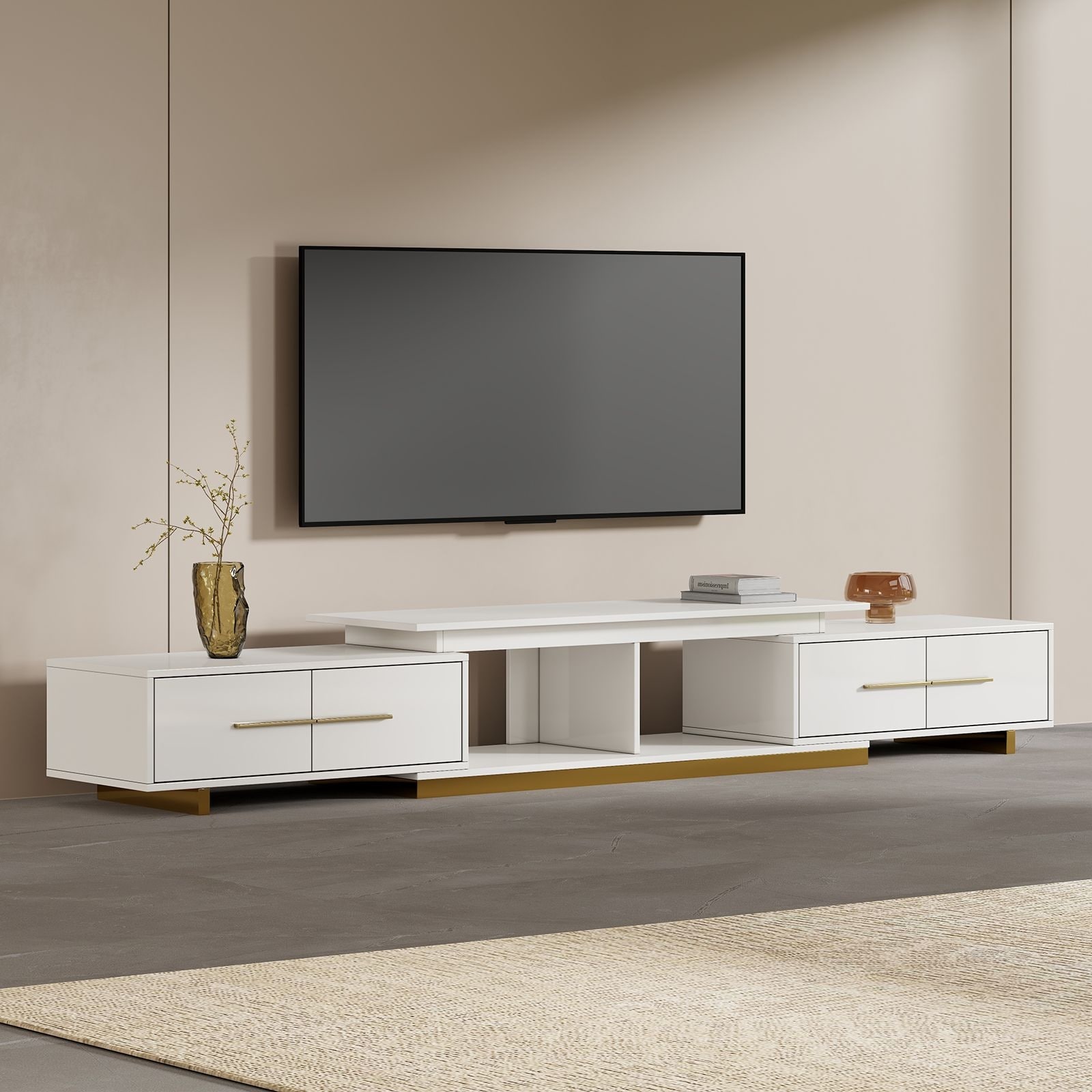 Modern Stainless Steel TV Stand, ( 63.4 “w-94.5 ”w) with Drawer Expandable Storage Entertainment Center for 100" TV - White