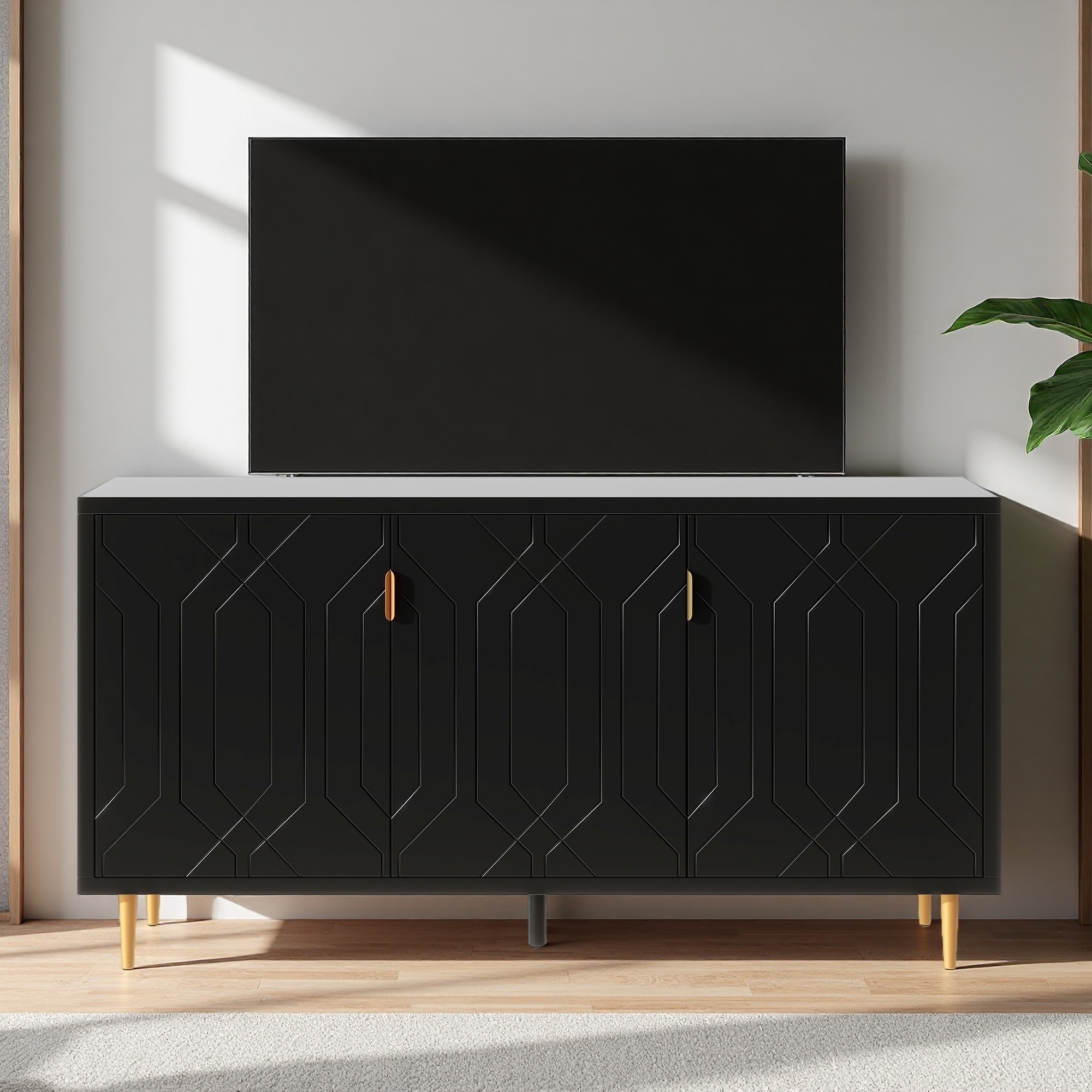 Modern TV Stand for 80in TV w/3-Door and Large Storage for Living Room
