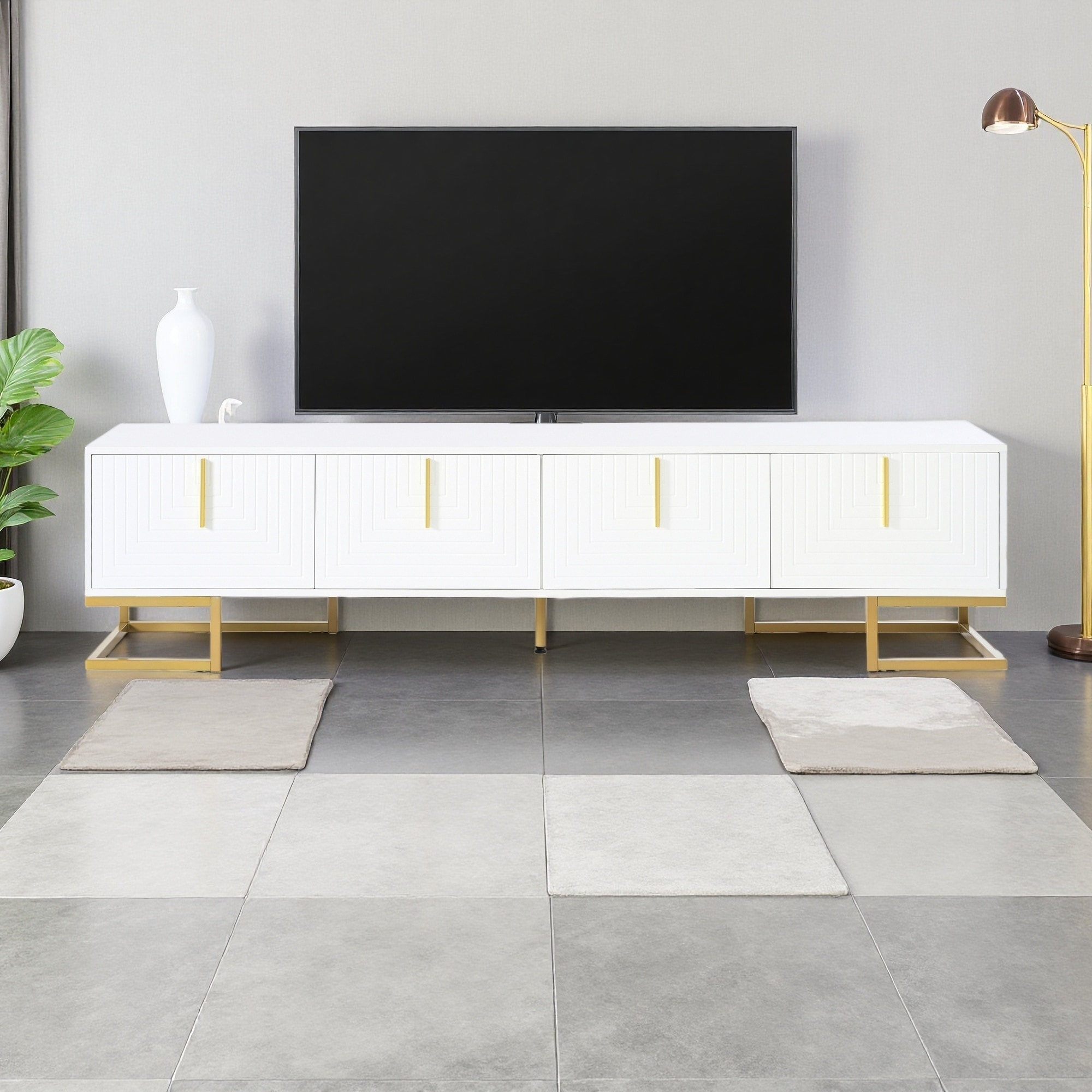 70.8" MDF Modern TV Stand with Metal Legs and Gold Handles, Adjustable Shelves and Protective Feet Pads