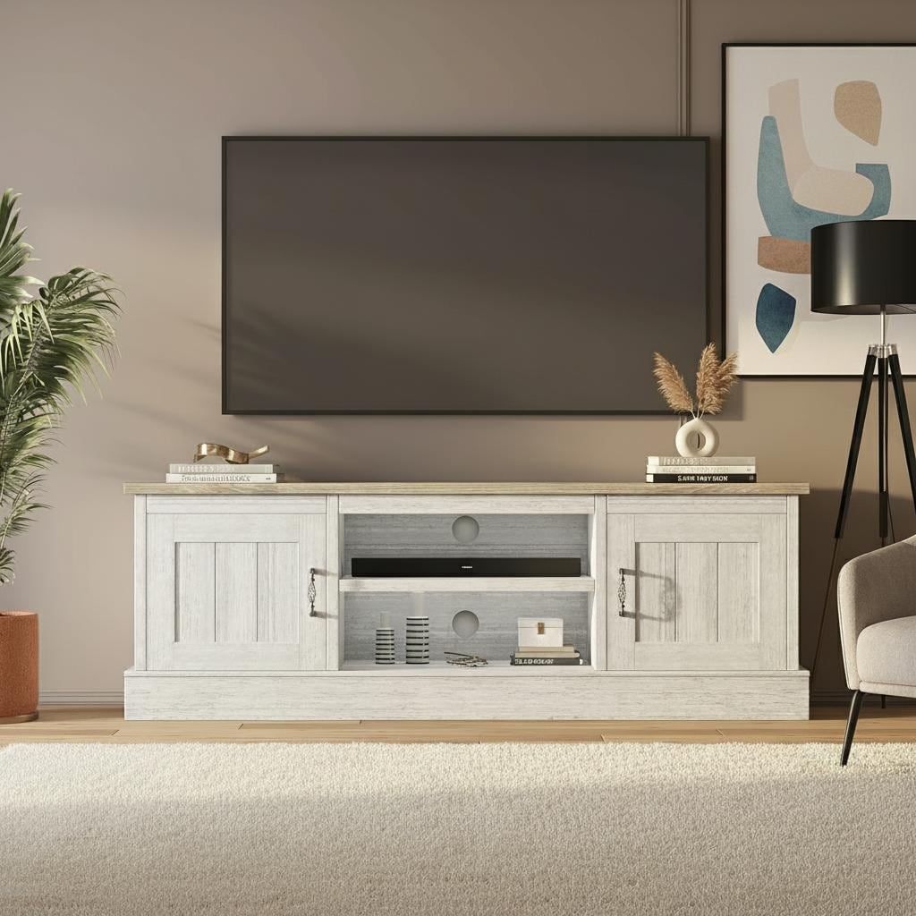 Two-Tone Rustic TV Stand with Storage for TVs up to 70", Classic Buffet Cabinet, Storage TV Cabinet with Adjustable Shelves