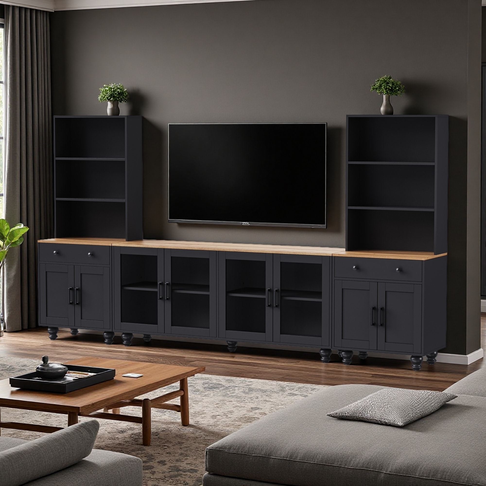 Combination TV Cabinet, for TVs Up to 70", Large TV Stand with Bookshelves, Storage TV Cabinet