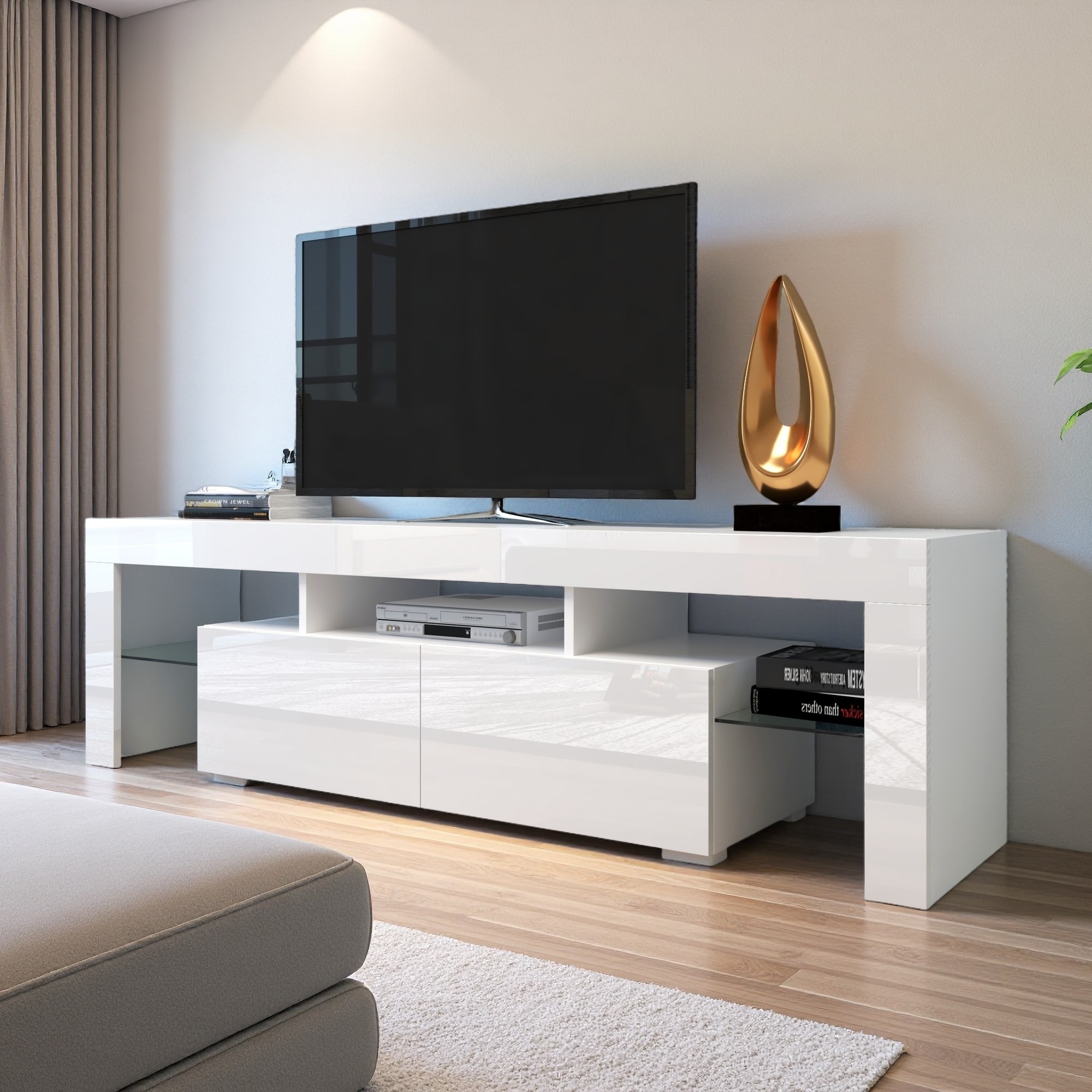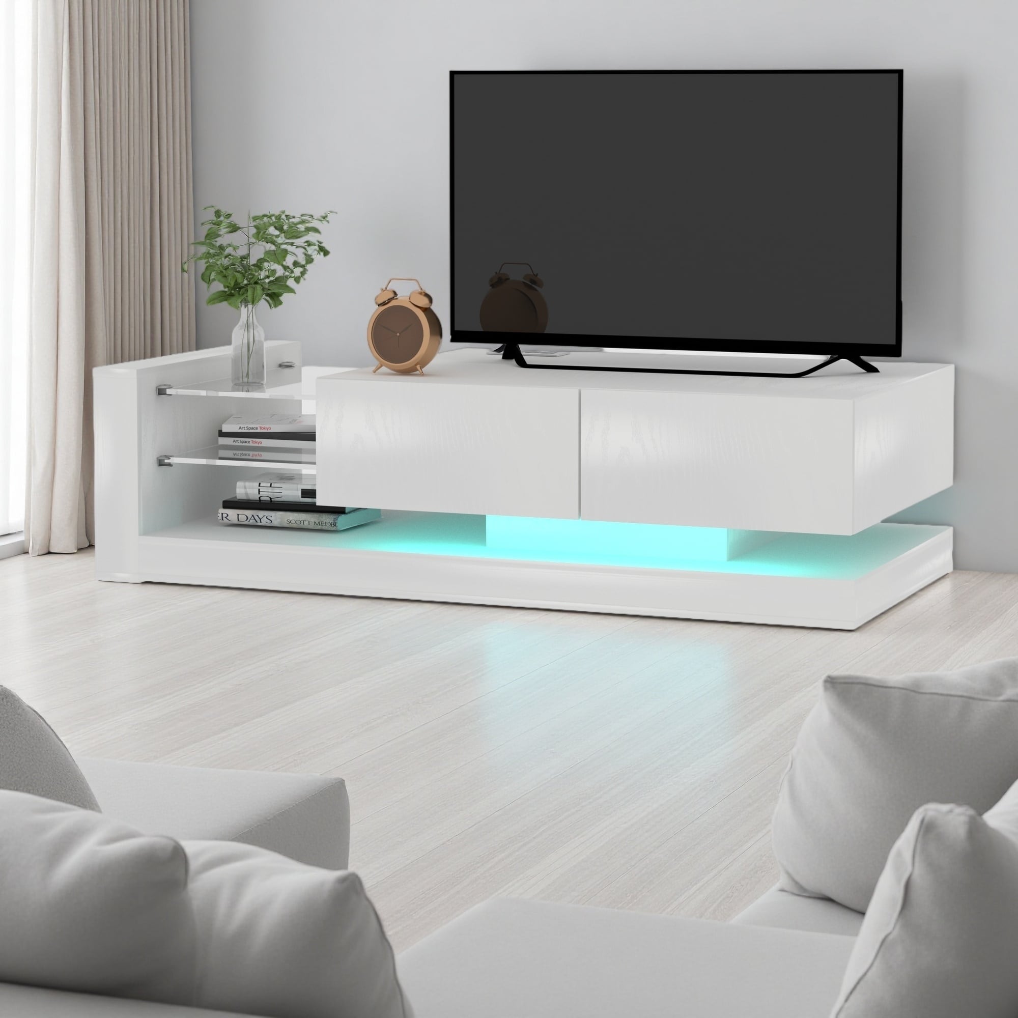 63" MDF Modern TV Stand with LED Lights & Storage Drawers