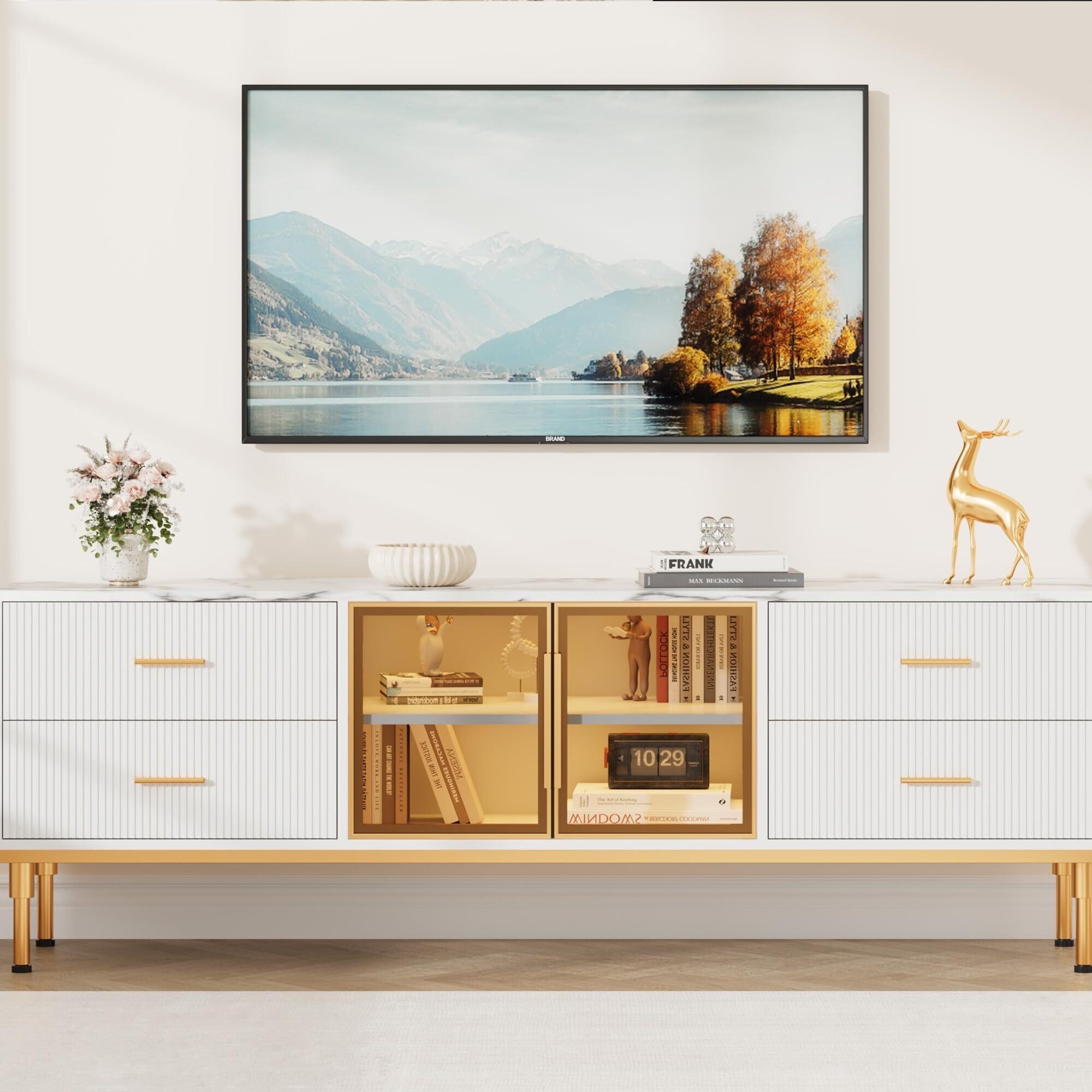 71" Acrylic TV Stand with 4 Drawers and 2 Open Shelves